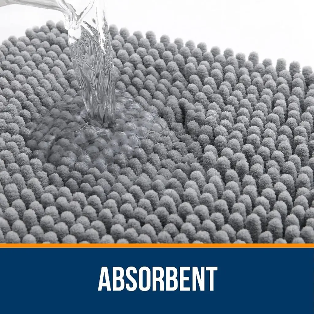 Chenille Bath Rug 30"x20" - Super Soft, Quick-dry & Non-slip, Machine Washable (Grey)