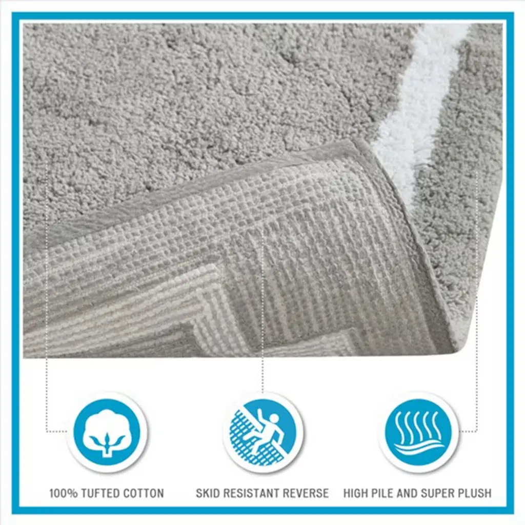 The Madison Park Evan Cotton Tufted Bath Rug provides the perfect balance of comfort and style to update your bathroom. This tufted bath rug features a contrasting white border on a soft colored ground creating a clean hotel look, while the plush medium pile weight provides pure soft comfort for your feet. The light latex coated back makes this bath rug skid resistance for better safety, while also keeping rug in place throughout the day.