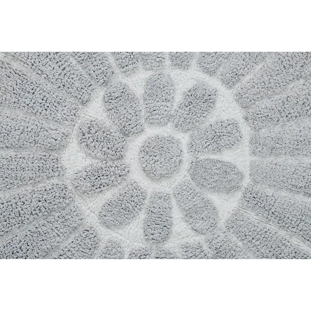 Add a burst of color to your bathroom with this Chesapeake Bursting Flower 2 pc. Round Bath Rug Set. Made with durable, machine-washable cotton fibers and featuring a lightly sprayed anti-skid back, these rugs add a cheerful, modern vibe to your space while ensuring secure placement on smooth floors. The set includes two bath rugs and a bonus step-out mat, all available in white/aqua, white/blue, white/lilac, white/coral, white/blush, white/pewter and white/light grey to fit your style.Features:Dimensions:
