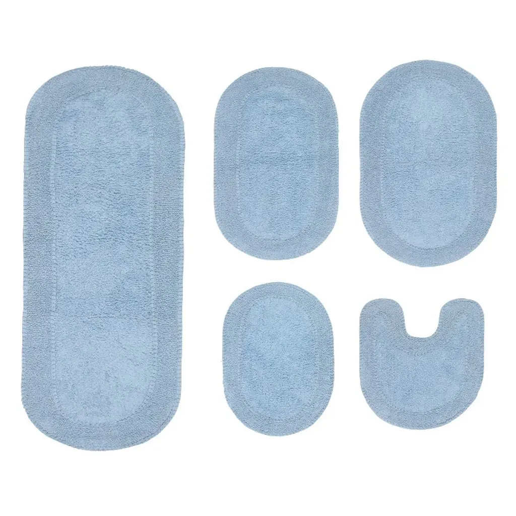 Double Ruffle Bathroom Rugs Set, Washable Rug, Extra Soft And Absorbent Bath Rug, Kitchen Mat, Bath Mat Set,non-slip, 5 Pcs Set With Contour, Blue