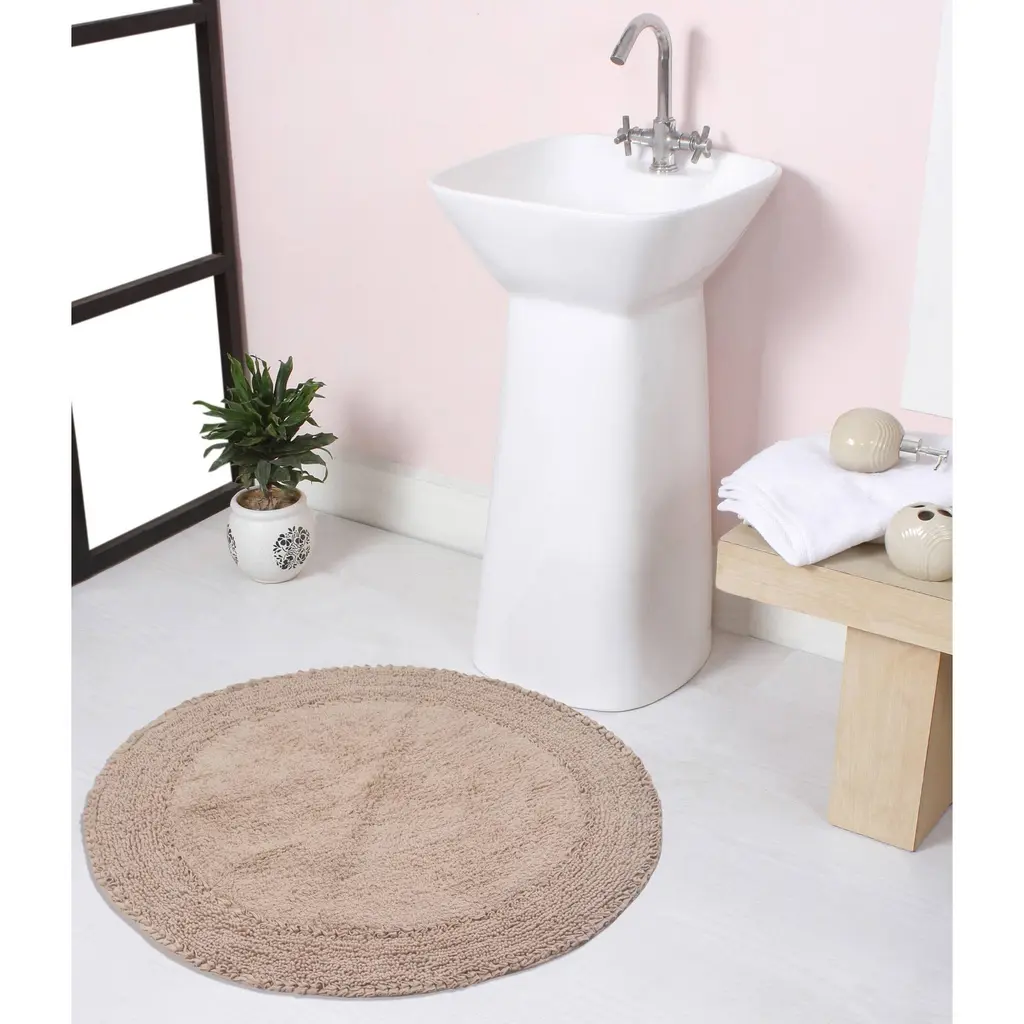 Add a pop of color to your bathroom with the Bloomfield Absorbent Cotton Machine Washable Bath Rug. This round rug is made of soft and comfortable cotton, making it a treat for your bare feet. Its clean and circular design is accented with lovely frilled rings that add a touch of elegance to any bathroom decor. Made in India, this rug is super absorbent, assuring to keep your bathroom floor dry even after a shower. It is also non-slippery to prevent any accidental skids or harm. Easy to wash and maintain, this circular bath mat is available in an assortment of vibrant colors to match your home interior.Features: