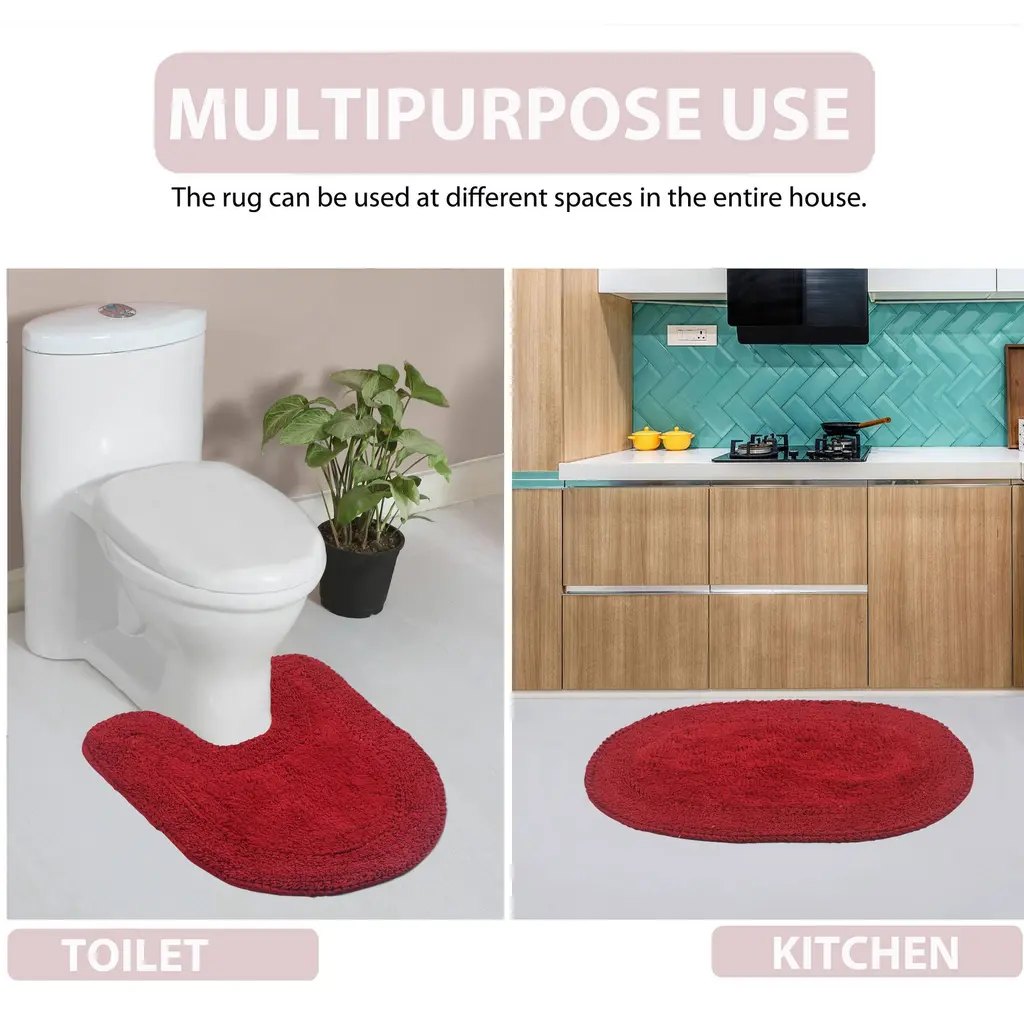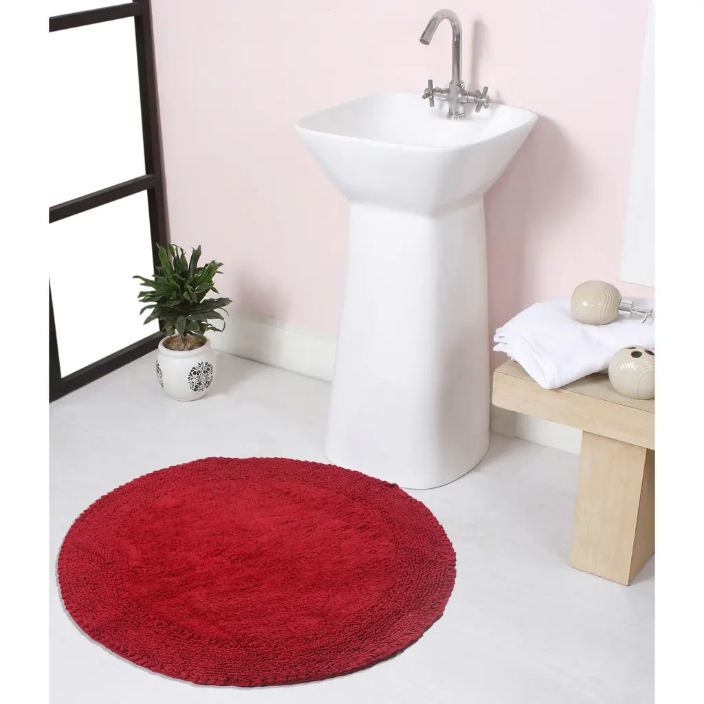 Add a pop of color to your bathroom with the Bloomfield Absorbent Cotton Machine Washable Bath Rug. This round rug is made of soft and comfortable cotton, making it a treat for your bare feet. Its clean and circular design is accented with lovely frilled rings that add a touch of elegance to any bathroom decor. Made in India, this rug is super absorbent, assuring to keep your bathroom floor dry even after a shower. It is also non-slippery to prevent any accidental skids or harm. Easy to wash and maintain, this circular bath mat is available in an assortment of vibrant colors to match your home interior.Features: