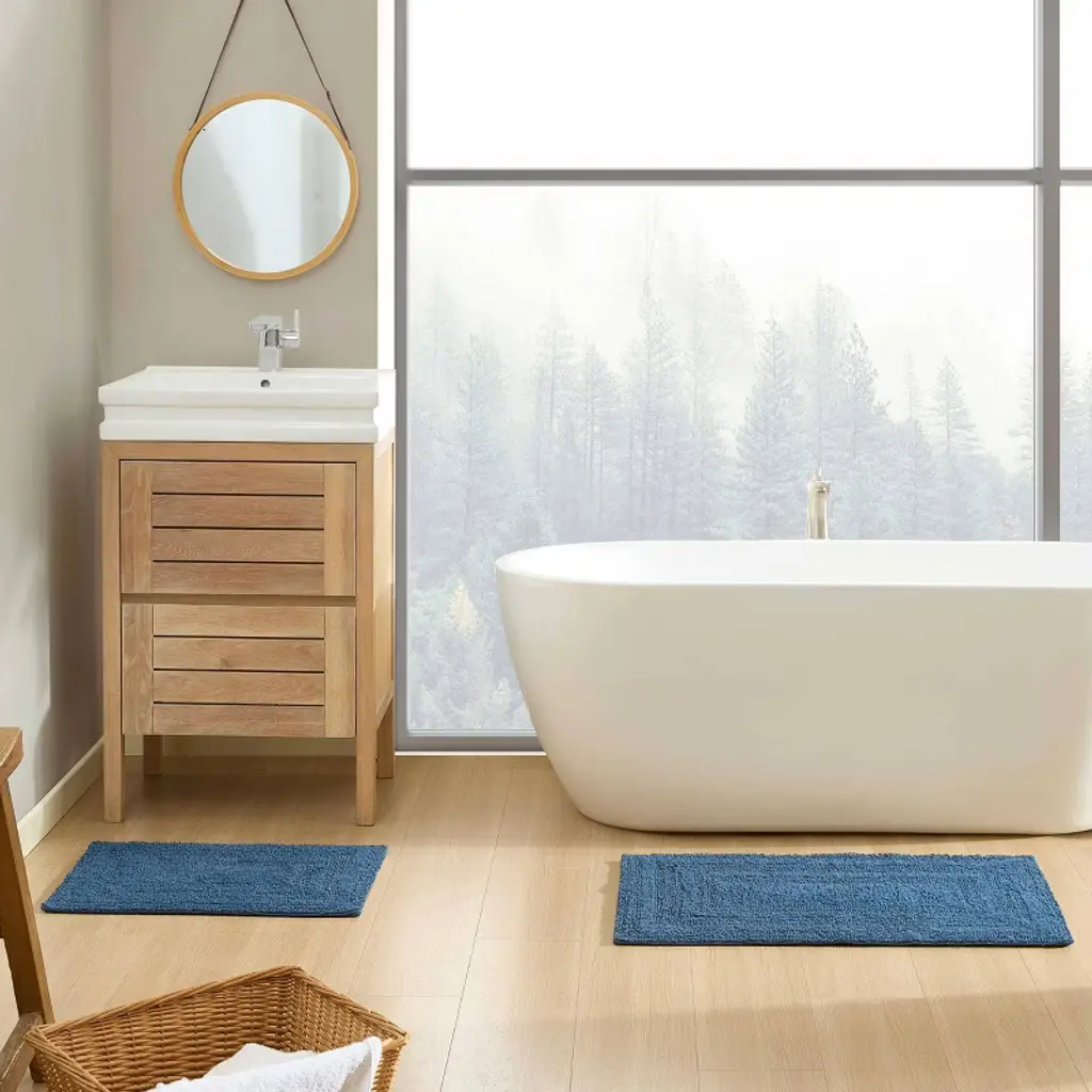 Eddie Bauer's classic Logan cotton bath rug collection is designed for both style and functionality, featuring a clean, textured racetrack border that adds a modern touch to any bathroom space. The benefit of cotton fabrication features a fast-drying capability ensuring convenience, helping it stay dry in between uses. Soft and plush, the rug offers a comfortable, cozy feel on your feet. Machine washable for easy care, it maintains its softness and shape after every wash. Available in a variety of sizes and colorways, it’s a versatile addition to any bathroom, offering a perfect fit for your space.