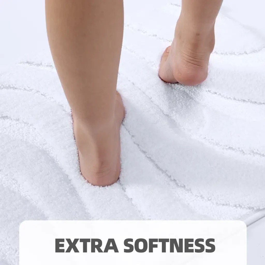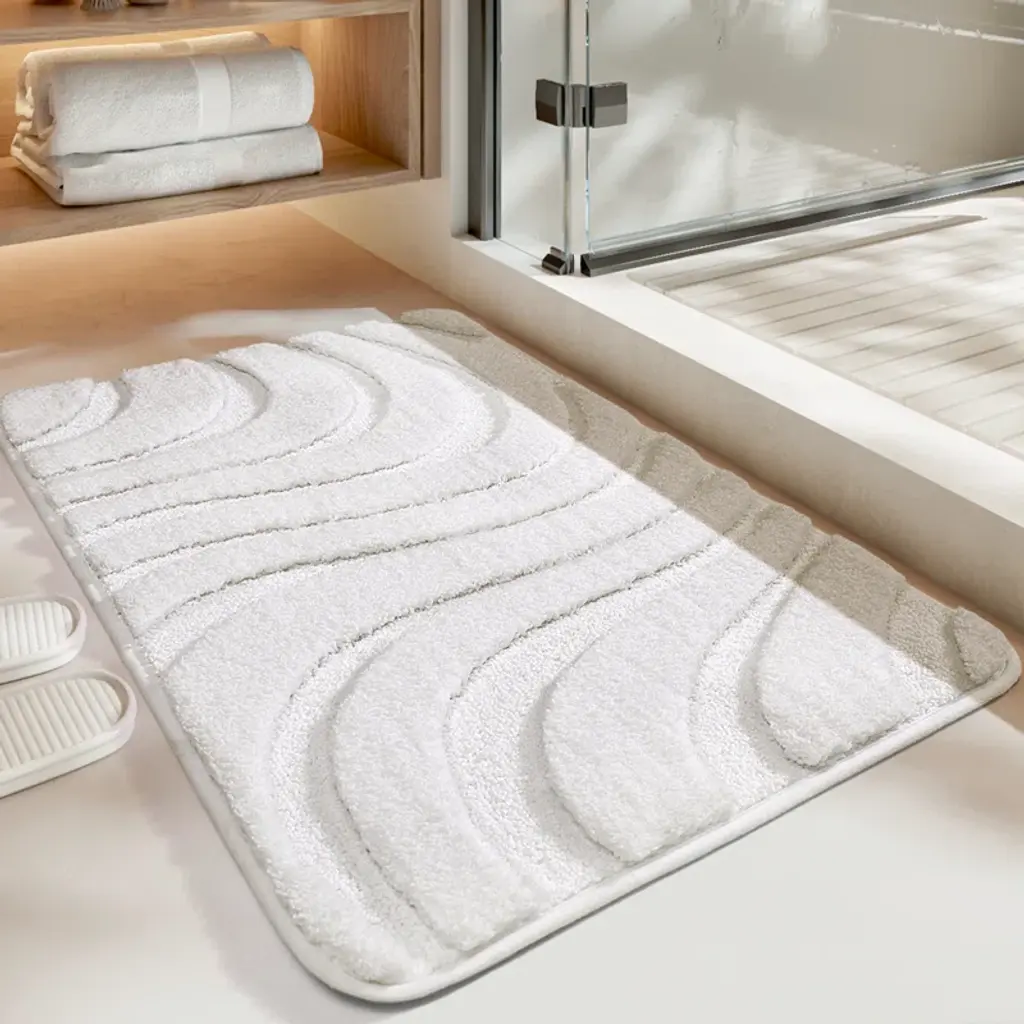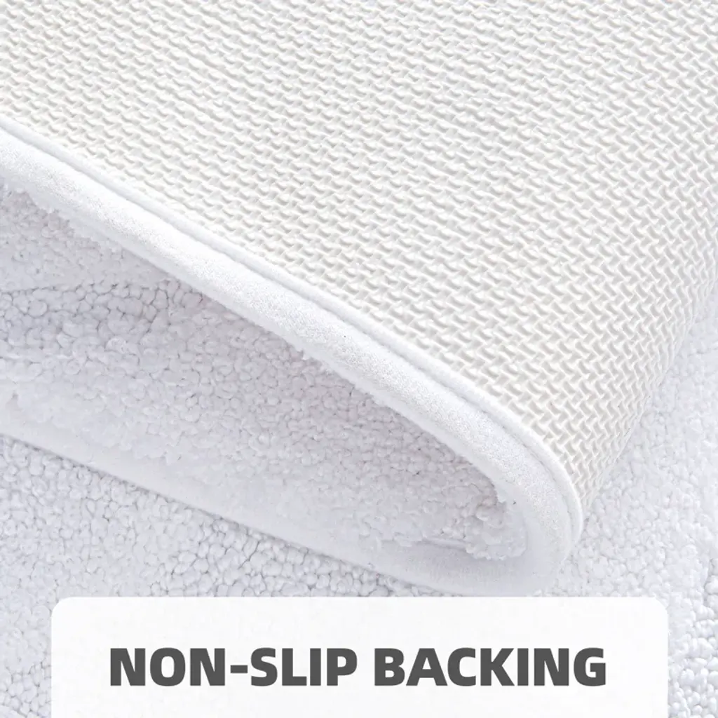 Our bathroom mat features 100% microfiber shags that soothes tired feet and shields toes from the cold floor. The density and plushness of our pile surpasses that of most other products.When you're stepping out of the bath, shower, or getting ready by the sink, high-pile and thick micro fabric helps to absorb water quick, keep your floors away dripping water. Moisture is trapped in the mat’s deep pile, allowing the rug to dry quickly and cleanly.In addition,the backing of non-slip bath rug is made of TPR rubber material. The anti slip bath mat will keep firmly in place, it's more safe and cozy. WARNING:Please place bathroom rug on DRY & SMOOTH floor.