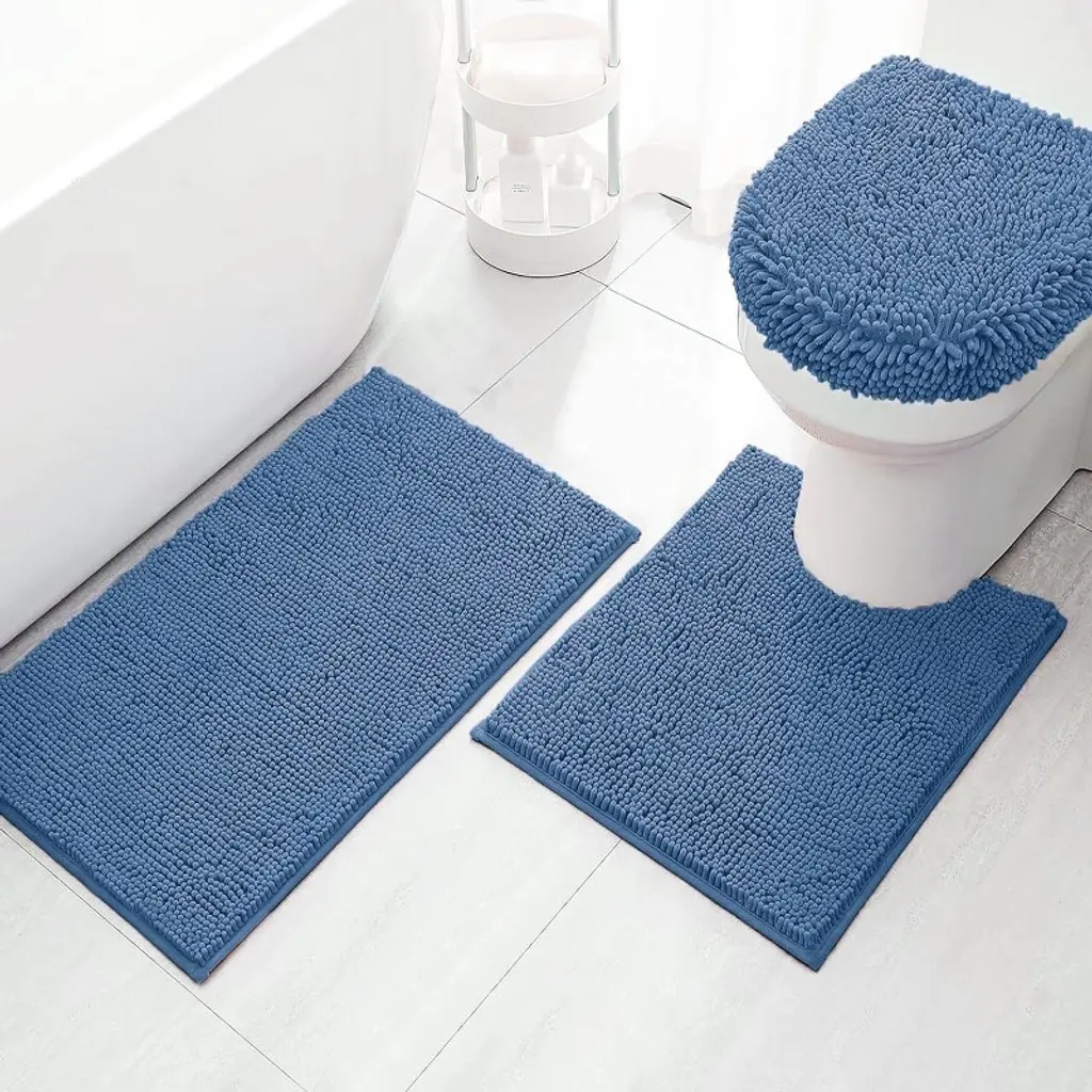 Elevate your bathroom aesthetic with this bath mat set featuring a minimalist design. This bath mat is an excellent decorative choice to elevate any bathroom. The microfiber pile instantly soaks up moisture from wet feet. It's ideal for placement next to a bathtub or shower entrance, quickly soaking up water as you step out of the bath, shower, or while getting ready by the sink SET INCLUDES: 1 Bath Rug (20" x 32"), 1 Contour Rug (20" x 20") MATERIAL: 100% polyester with a non-slip backing. Fiber that's incredibly soft and durable. Our rugs use thousands of ultra-soft and plush, shaggy chenille fibers for that sensational, cloud-like feeling when you step out of the shower. SOFT & COMFORTABLE: Step into luxury after bath or shower with this soft, quality super soft bath rug set. Super soft and cozy, skin-friendly, relieve pressure and fatigue on your feet. WATER ABSORBENT: Our bath rugs are made with hundreds of individual piles. The thick chenille fabrics absorb water quickly to help your floors from dripping water while you're getting out of the bath. Moisture is trapped in the mat's high pile, allowing the bath rug to dry quickly. MACHINE WASHABLE: These chenille bath mats are easy to clean. Machine wash with cold water and mild detergent (no chlorine or bleach) tumble dry at low speed or hang dry.