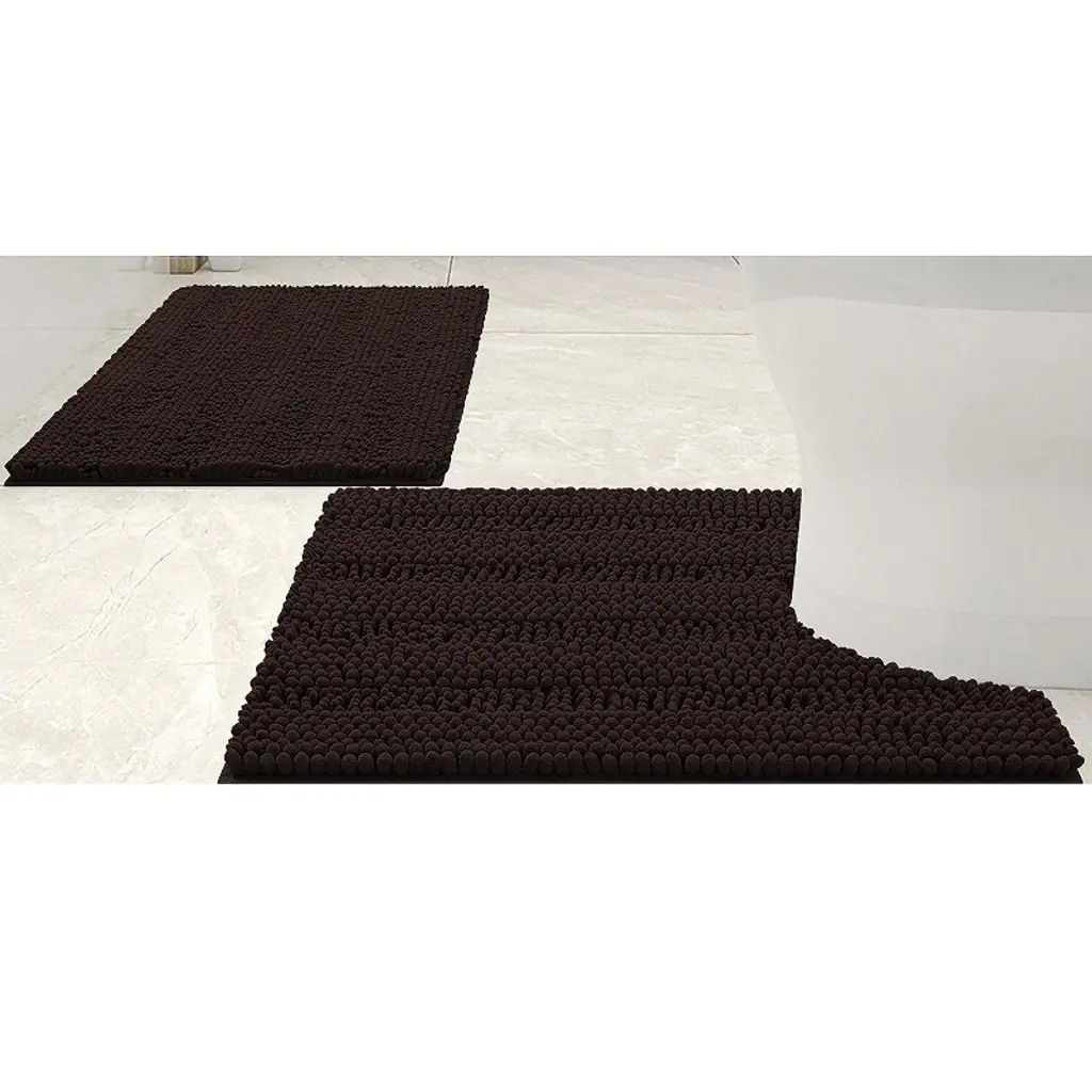 Home Mart Goods 2 Piece Brown Soft Cozy Plush Chenille Bath Mat & Contour Bath Rug
