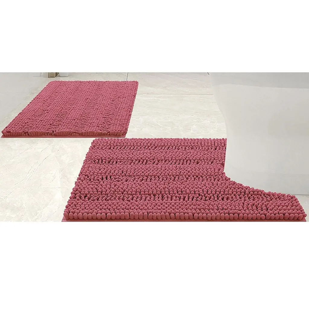 Elevate your bathroom aesthetic with this bath mat set featuring a minimalist design. This bath mat is an excellent decorative choice to elevate any bathroom. The microfiber pile instantly soaks up moisture from wet feet. It's ideal for placement next to a bathtub or shower entrance, quickly soaking up water as you step out of the bath, shower, or while getting ready by the sink SET INCLUDES: 1 Bath Rug (20" x 32"), 1 Contour Rug (20" x 20") MATERIAL: 100% polyester with a non-slip backing. Fiber that's incredibly soft and durable. Our rugs use thousands of ultra-soft and plush, shaggy chenille fibers for that sensational, cloud-like feeling when you step out of the shower. SOFT & COMFORTABLE: Step into luxury after bath or shower with this soft, quality super soft bath rug set. Super soft and cozy, skin-friendly, relieve pressure and fatigue on your feet. WATER ABSORBENT: Our bath rugs are made with hundreds of individual piles. The thick chenille fabrics absorb water quickly to help your floors from dripping water while you're getting out of the bath. Moisture is trapped in the mat's high pile, allowing the bath rug to dry quickly. MACHINE WASHABLE: These chenille bath mats are easy to clean. Machine wash with cold water and mild detergent (no chlorine or bleach) tumble dry at low speed or hang dry.