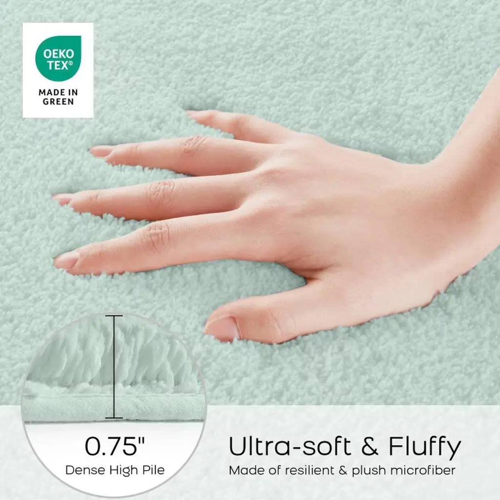 Treat your feet to spa‑level comfort with this 20" x 30" marshmallow‑soft bath rug. Crafted from extra‑dense, high‑pile tufted microfiber, it delivers a plush 0.75" surface that cushions every step while quickly wicking away moisture. Proprietary quick‑dry technology keeps the rug feeling fresh and helps prevent mildew, yet its thick fibers remain highly absorbent after showers or baths. A non‑skid latex backing secures the rug on tile or hardwood floors, adding safety to daily routines. Certified by OEKO‑TEX®, the rug contains no harmful chemicals—safe for the whole family. Fade‑resistant colors stay vibrant wash after wash, and the entire piece is machine‑washable for effortless care. Built to withstand frequent use, this heavy‑weight rug brings luxury, durability, and modern style to any bathroom.