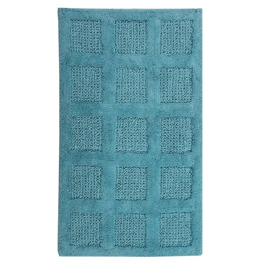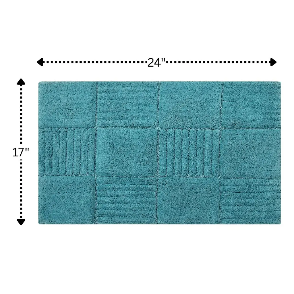 This unique checkerboard designed bath rug is made of 100% soft plush cotton and is super soft to the touch with a dense lush pile. It has a non-skid back and is extremely absorbent and functional. The beautiful range of contempory colors will add an elegant look to any bathroom decor. Product Size: 17 x 24. Product Color: White, Ivory, Silver, Natural, Sage, Light Blue, Stone, Aqua...
