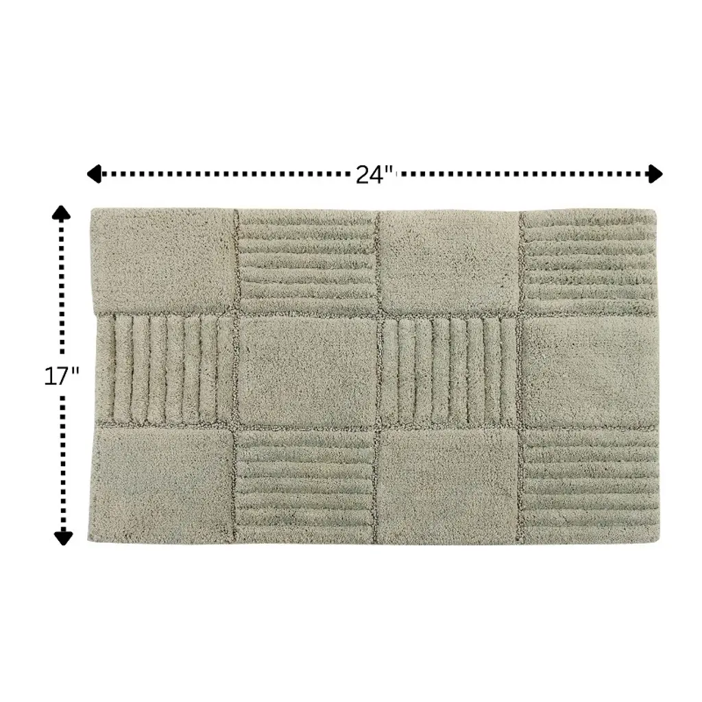 This unique checkerboard designed bath rug is made of 100% soft plush cotton and is super soft to the touch with a dense lush pile. It has a non-skid back and is extremely absorbent and functional. The beautiful range of contempory colors will add an elegant look to any bathroom decor. Product Size: 17 x 24. Product Color: White, Ivory, Silver, Natural, Sage, Light Blue, Stone, Aqua...