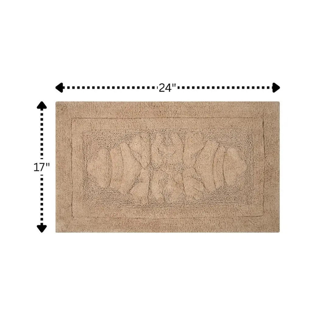 This splendid bath rug with a sculptured center is made of 100% soft plush cotton and is super soft to the touch. It has a non-skid back and is the ultimate in comfort while being extremely absorbent. The beautiful array of colors will add an elegant look to any bathroom. Product Size: 17 x 24. Product Color: White, Ivory, Silver, Natural, Light Blue, Stone...