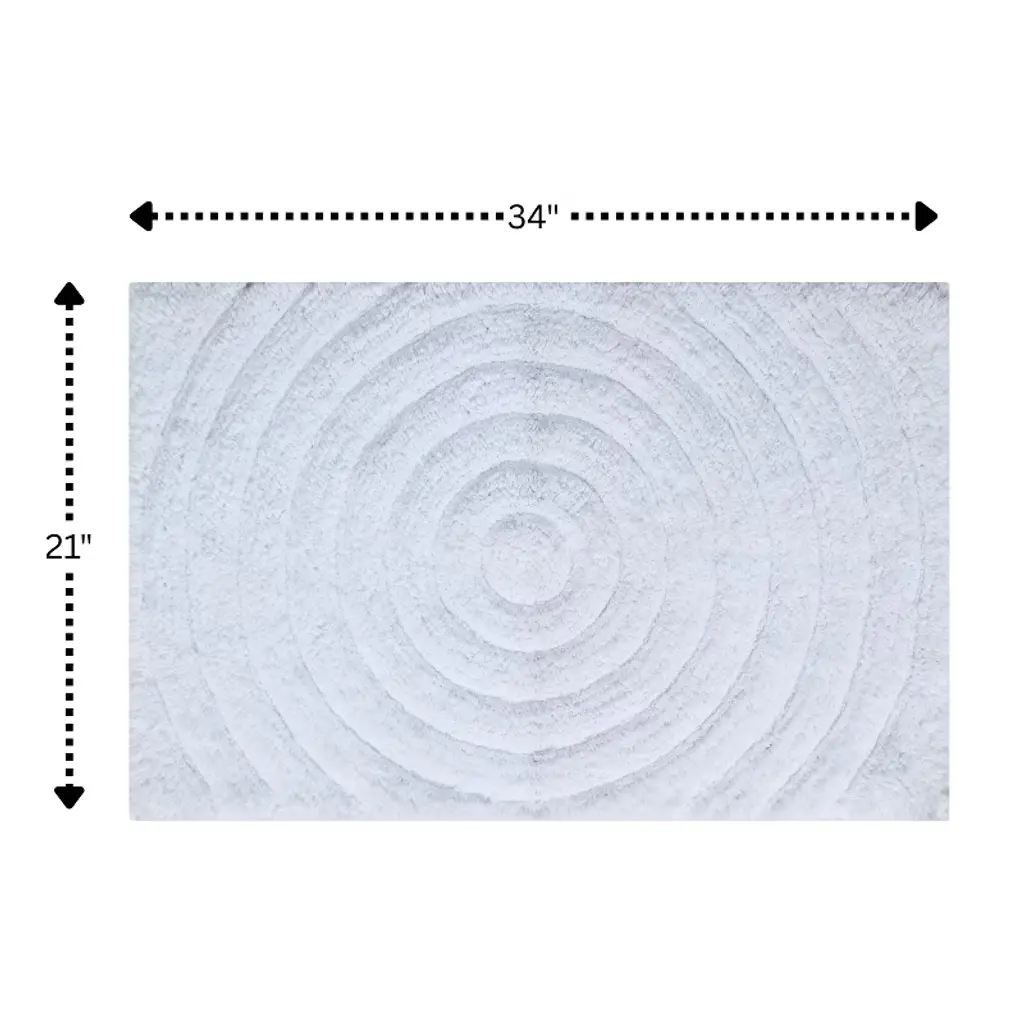 This luxurious circle pattern bath rug is made of 100% soft plush cotton. It has a super soft feel which is the ultimate in comfort while being very absorbent and it has a non-skid back which makes it extremely functional. The wonderful array of colors will add an elegant touch to any bathroom decor. Product Size: 21 x 34. Product Color: White, Ivory, Silver, Natural, Sage, Stone, Aqua...