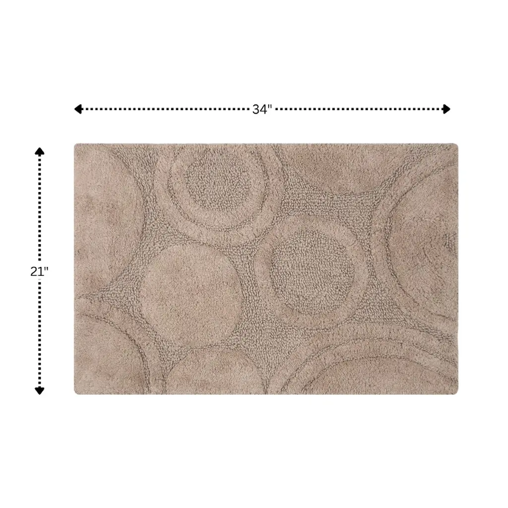 This luxurious 100% soft plush cotton bath rug features an all over circle design with a non-skid back. It's super soft to the touch with a dense lush pile. It's the ultimate in comfort while being extremely absorbent and functional. The elegant range of contempory colors will enhance any bathroom decor. Available Size: 17x24", 20x30", 21x34" and 24x40". Color: Stone...