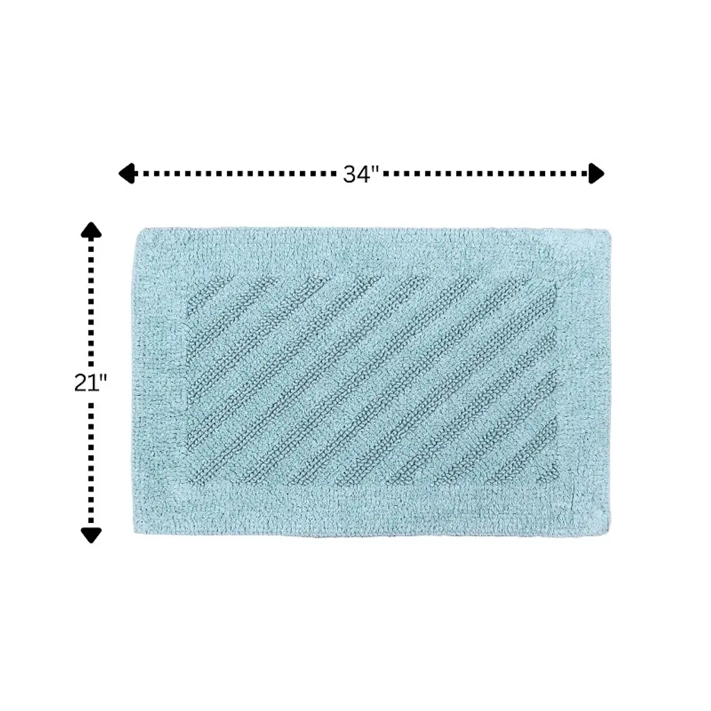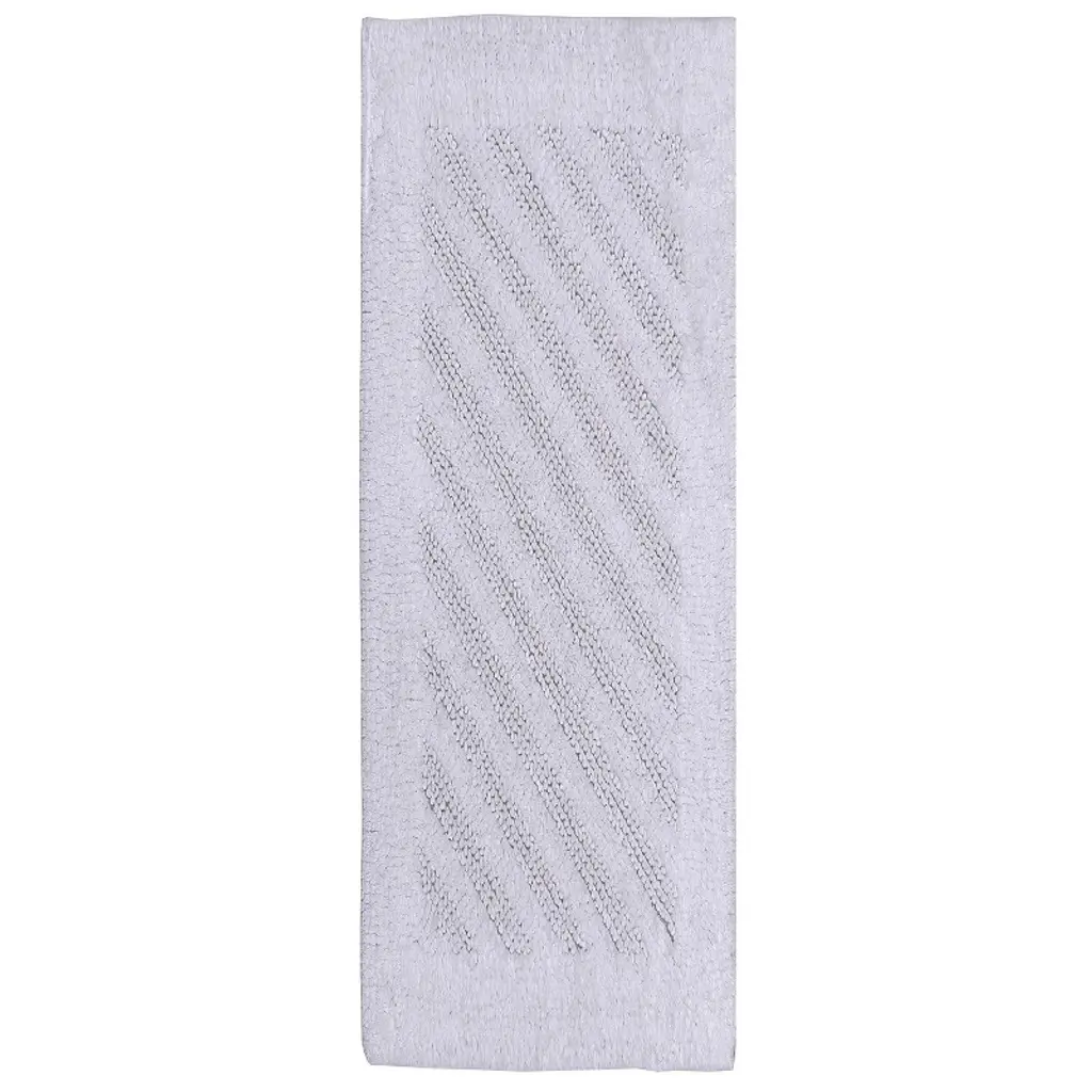 Designed to sit alongside your tub, shower, or sink and provide a comfortable, warm, dry spot for you to stand, the Knightsbridge rug will coordinate with infinite decorating styles. This opulent diagonal striped bath rug is made of 100% soft plush cotton and is super soft to the touch with a dense lush pile. Its reversible design is the ultimate in comfort while being extremely absorbent and functional. The beautiful array of contemporary colors will add an elegant look to any bathroom decor. Available colors: White, Ivory, Silver, Natural, Sage, Light Blue, and Stone. Measures: 21in x 34in..