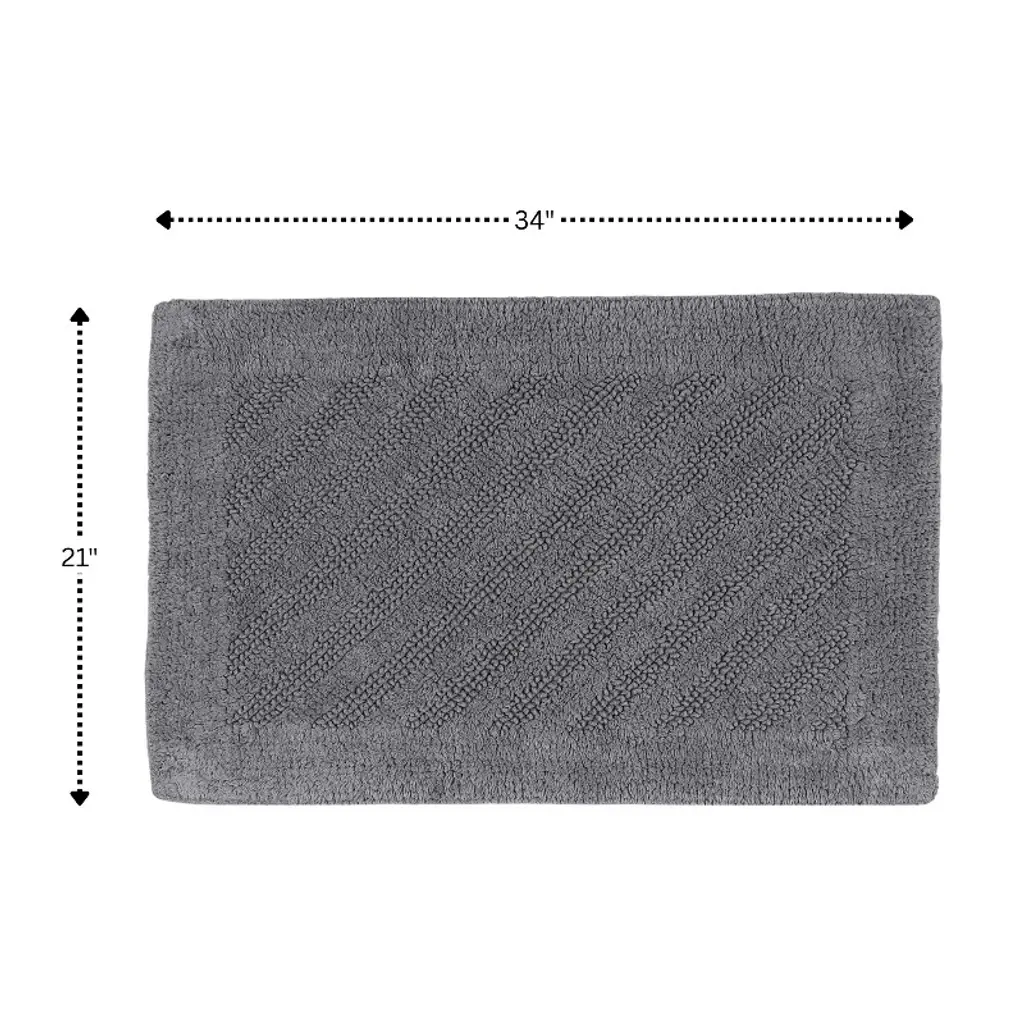 Designed to sit alongside your tub, shower, or sink and provide a comfortable, warm, dry spot for you to stand, the Knightsbridge rug will coordinate with infinite decorating styles. This opulent diagonal striped bath rug is made of 100% soft plush cotton and is super soft to the touch with a dense lush pile. Its reversible design is the ultimate in comfort while being extremely absorbent and functional. The beautiful array of contemporary colors will add an elegant look to any bathroom decor. Available colors: White, Ivory, Silver, Natural, Sage, Light Blue, and Stone. Measures: 21in x 34in..