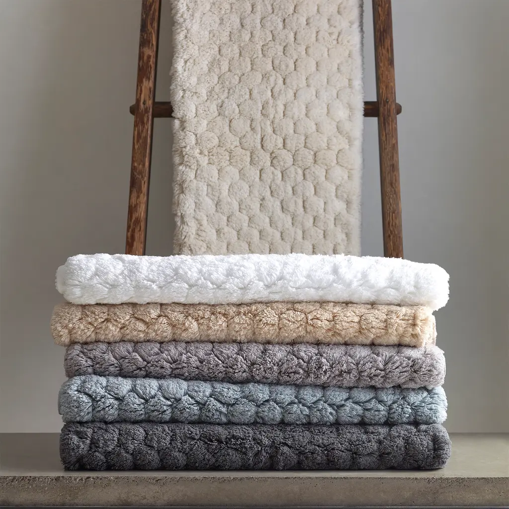 Plush, absorbent cotton in a sculpted, honeycomb design makes these Matouk bath rugs an every day luxury.