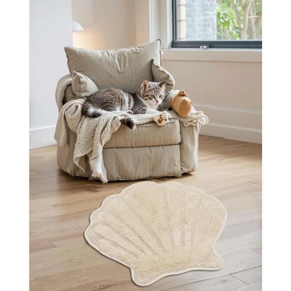 Elevate your bath space with the soft sophistication of the Marilyn Collection Shell-Shaped Bath Rug. Expertly crafted from 100% cotton, this ultra-plush 2200 GSM rug features a whimsical shell silhouette that brings a coastal, spa-like feel to your home. Measuring 25" x 28", it’s the perfect size for use in front of bathtubs, showers, or vanities. Available in five serene colors Beige, Blue, Sage, Sand, and White, this rug complements a variety of bathroom palettes. Its reversible design allows for extended use and versatility, while the absence of anti-skid backing gives you the flexibility to pair it with your preferred rug pad for added safety. With a thick 20 mm mat and an 11 mm high pile, it offers supreme comfort with every step. Machine washable and easy to care for, it’s a perfect marriage of function and timeless design.