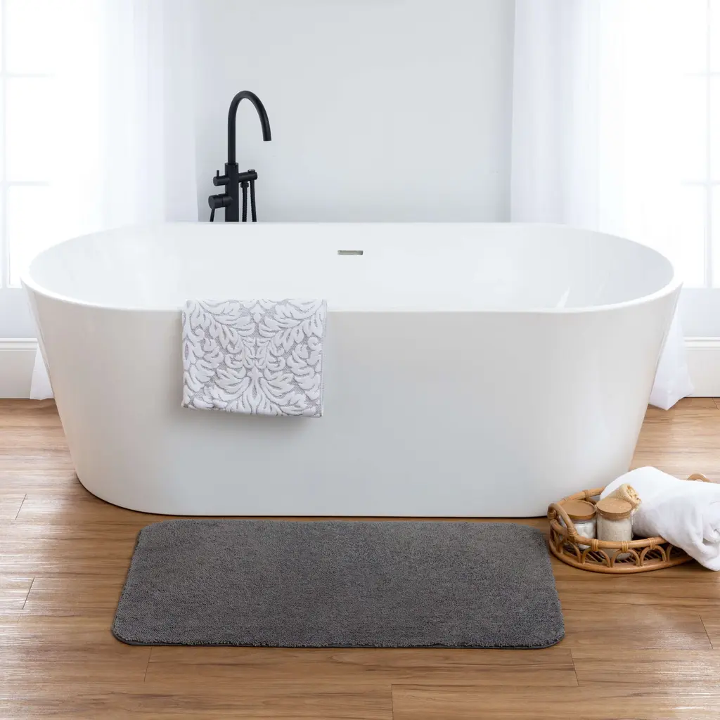 Bring warmth and color to your bathroom with decorative bath rugs by Mohawk Home. Fit for a spa, these machine-tufted rugs ensure comfort under your feet as you step out of the tub.Crafted of durable stain-resistant nylon material and backed with non-skid latex, this rug stays in place ensuring seamless style in your bathroom even on busy mornings. Choose from a variety of colors such as blue, grey, tan, black, red, green, and more to match your décor.Features: