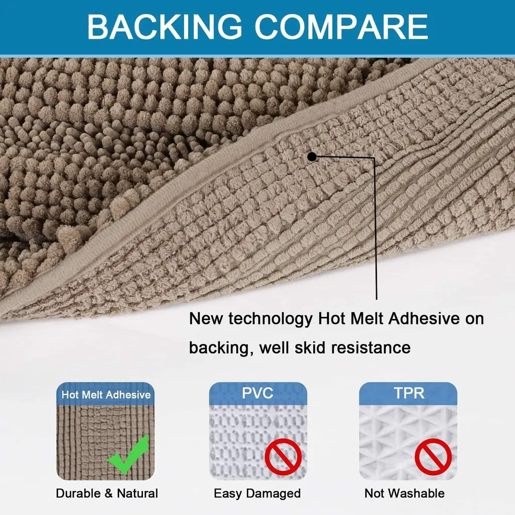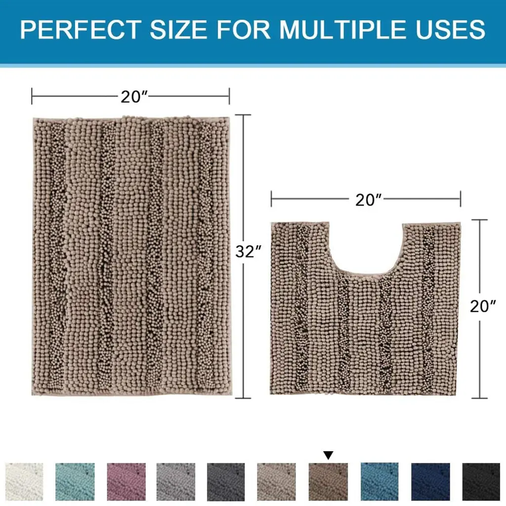 Crafted from exceptionally silky, soft, velvety chenille, perfect for stepping out of the shower or bath.These upgraded luxurious shag rugs can soak up the water and keep your floor dry like a giant sponge, making your feet feel the ultimate luxury enjoyment, spruce up your powder room for maximum serenity and warmth. With updated version slip-resistant SBE/Hot melt spray backing, keeps the rugs mats long lasting and more durable, keep the new fresh look year after year, while still strongly hold mats firmly in place for safety. The bold pop stripes pattern lends a beautiful rich decor element to your bathroom, bring charming and fantastic feeling for your family. Playful and neutral colors, multiple sizes are essential for any style spaces. EASY CARE: Machine wash separately in cold water using mild detergent. Use only non-chlorine bleach when needed. Tumble dry on low setting and shake to restore fluff. Or Simply pick up and shake rug to freshen and give chenille pile new life.Non-skid backing SBE/Hot melt spray, helps keep mats firmly in place. Durable binding maintains shape for long-lasting use. 1. This upgraded luxurious shag rug is more thick and bushy.High quality up to 2000g/sm weight, providing exceptionally plush & ultimate supportive comfort underfoot. 2. Non-slip backing that stays securely in place. The durable, non-slip material provides long-lasting performance.It reliably grips the floor, holding the rug in the desired spot, even when wet. 3. The super-absorbent bath rug's microfiber surface quickly soaks up an impressive amount of water and keeps it contained. 4. Gentle to the floor, keep in space well when the floor is dry, perfect for stepping out of the shower or bath. 5. Easy care for machine washable in cold water using mild detergent. Use only non-chlorine bleach when needed. Tumble dry on low setting.