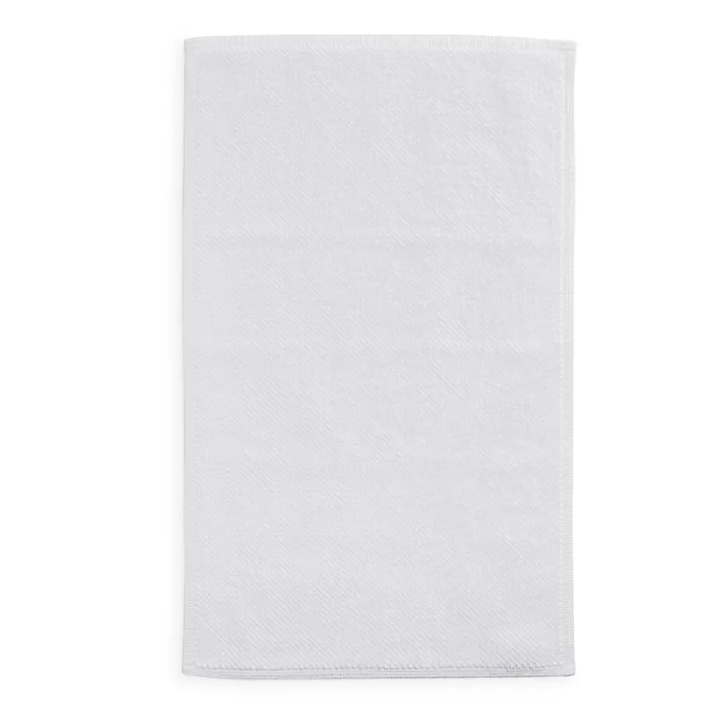 A pebbled weave creates the soft, nubby texture of this absorbent organic cotton rug. Mid-to-heavy weight mat feels soft and substantial underfoot, with a 1” border and a notched, nobby texture along the ends.
