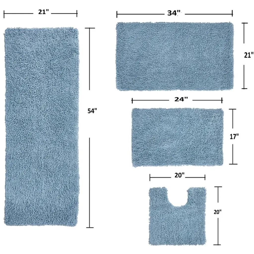 Set Of 4 Fantasia Bath Rug Collection Blue Cotton Shaggy Pattern Tufted Bath Rug Set - Home Weavers