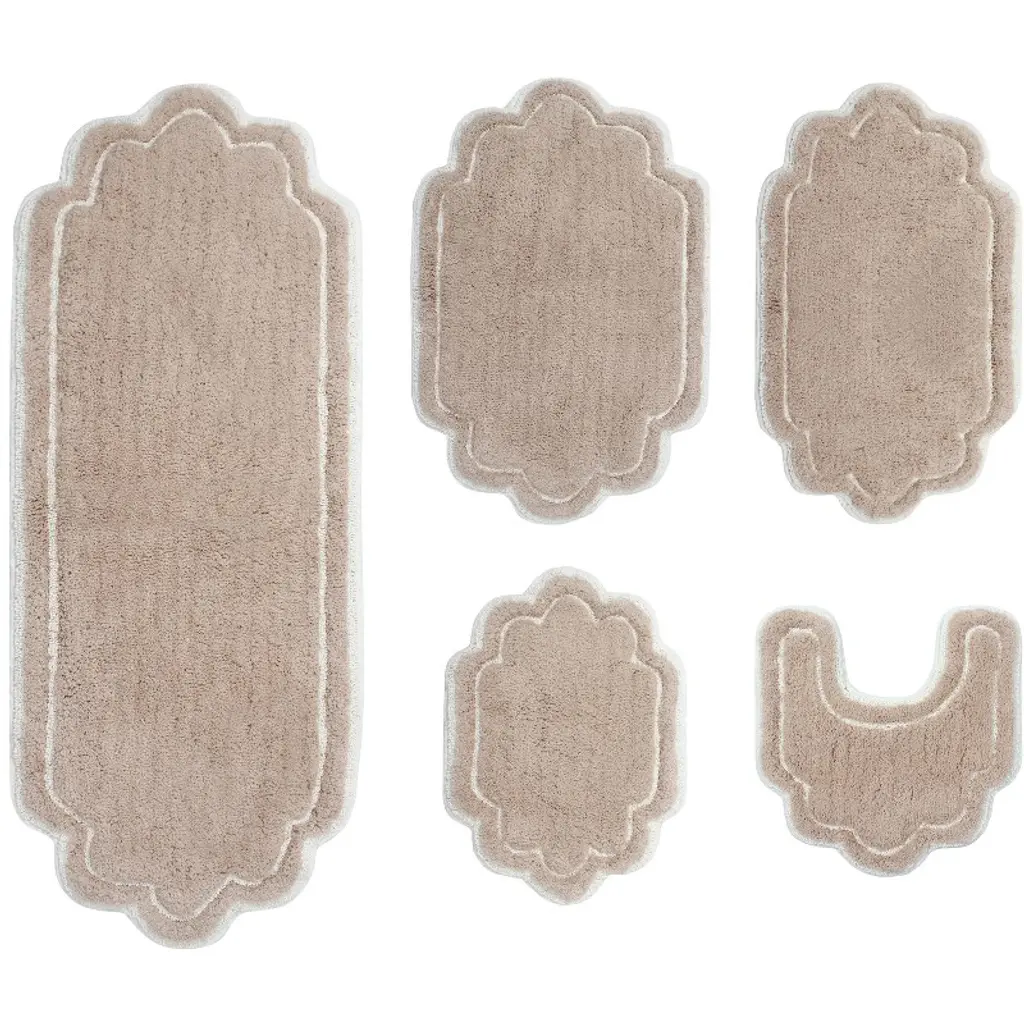 Set Of 5 Allure Collection Linen Cotton Tufted Bath Rug Set - Home Weavers