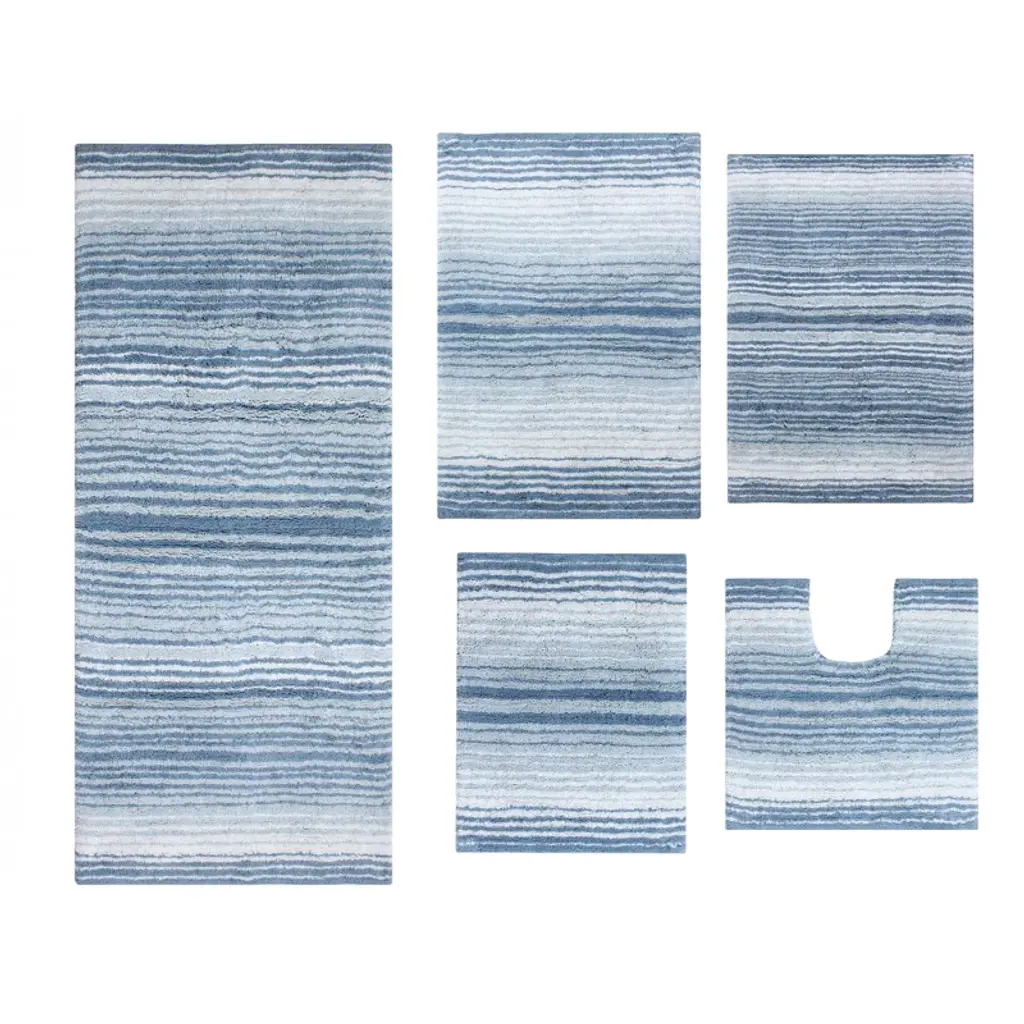 Set Of 5 Gradiation Rug Collection Blue Cotton Tufted Bath Rug Set - Home Weavers