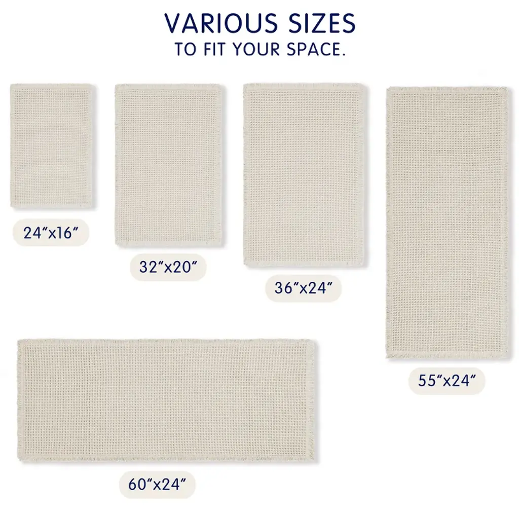 Subrtex Waffle bathroom rugs and mats combine comfort and style, offering a plush feel underfoot while keeping floors dry and enhancing the overall look of your sink, bathtub, and shower areas. Available in a variety of colors and sizes, Subrtex provides the perfect finishing touch to your bathroom decor. Crafted from soft premium microfiber, these rugs are ideal for comfort-seeking shoppers, with tassel designs adding an elegant aesthetic. Durable and long-lasting even in wet conditions, the luxurious plush pile of Subrtex mats soothes tired feet and protects toes from cold floors.