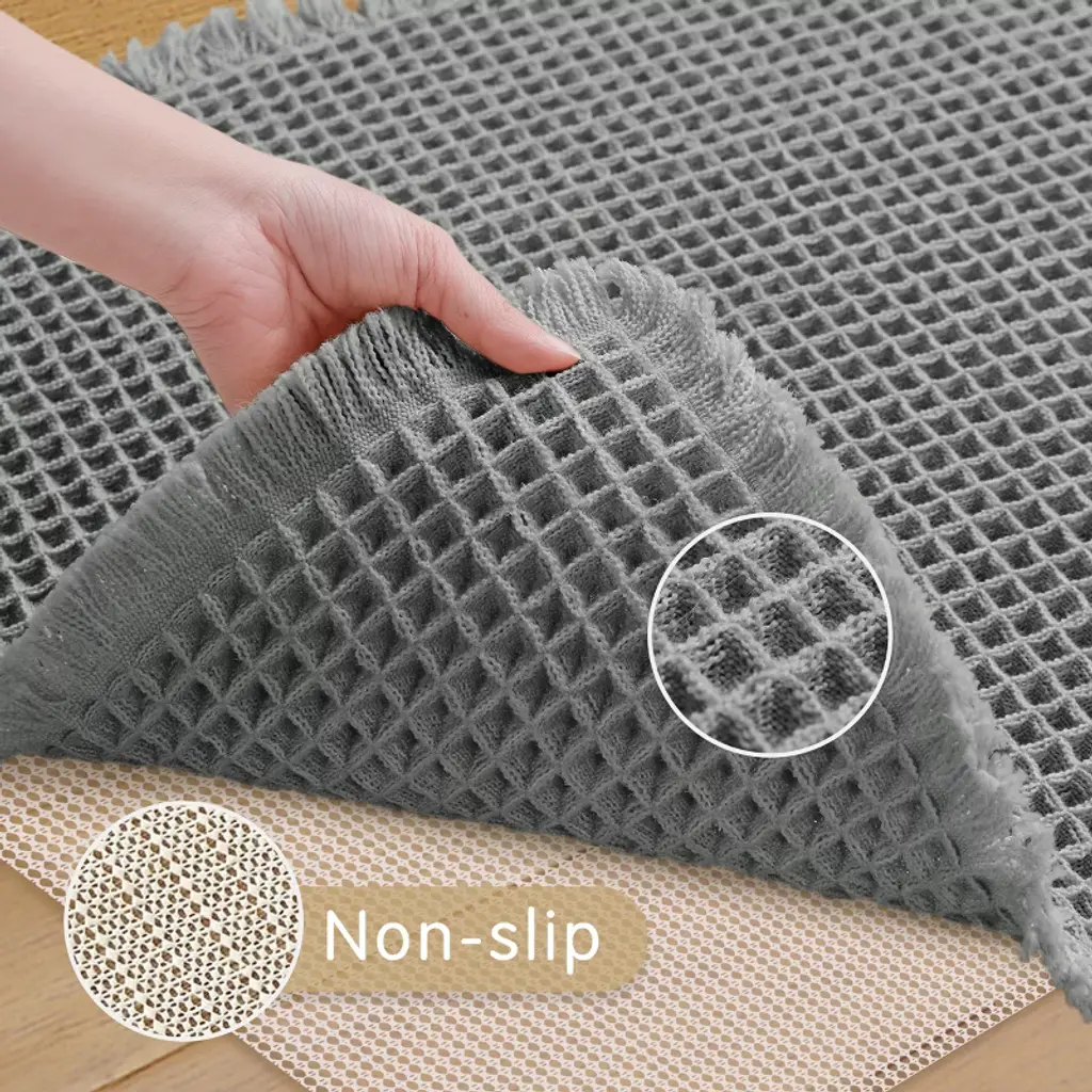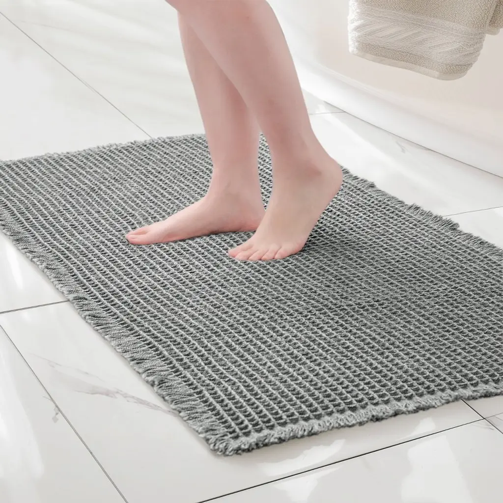 Subrtex Waffle bathroom rugs and mats combine comfort and style, offering a plush feel underfoot while keeping floors dry and enhancing the overall look of your sink, bathtub, and shower areas. Available in a variety of colors and sizes, Subrtex provides the perfect finishing touch to your bathroom decor. Crafted from soft premium microfiber, these rugs are ideal for comfort-seeking shoppers, with tassel designs adding an elegant aesthetic. Durable and long-lasting even in wet conditions, the luxurious plush pile of Subrtex mats soothes tired feet and protects toes from cold floors.