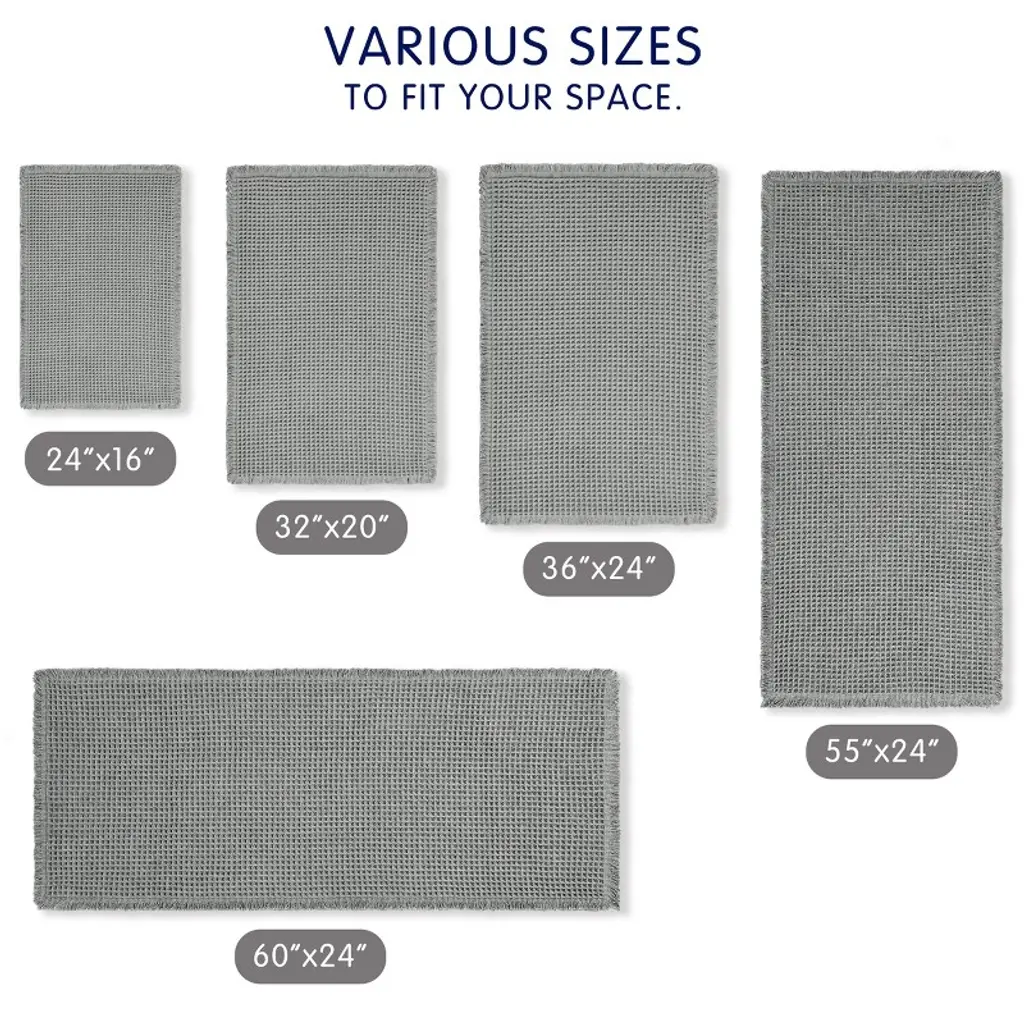 Subrtex Waffle bathroom rugs and mats combine comfort and style, offering a plush feel underfoot while keeping floors dry and enhancing the overall look of your sink, bathtub, and shower areas. Available in a variety of colors and sizes, Subrtex provides the perfect finishing touch to your bathroom decor. Crafted from soft premium microfiber, these rugs are ideal for comfort-seeking shoppers, with tassel designs adding an elegant aesthetic. Durable and long-lasting even in wet conditions, the luxurious plush pile of Subrtex mats soothes tired feet and protects toes from cold floors.