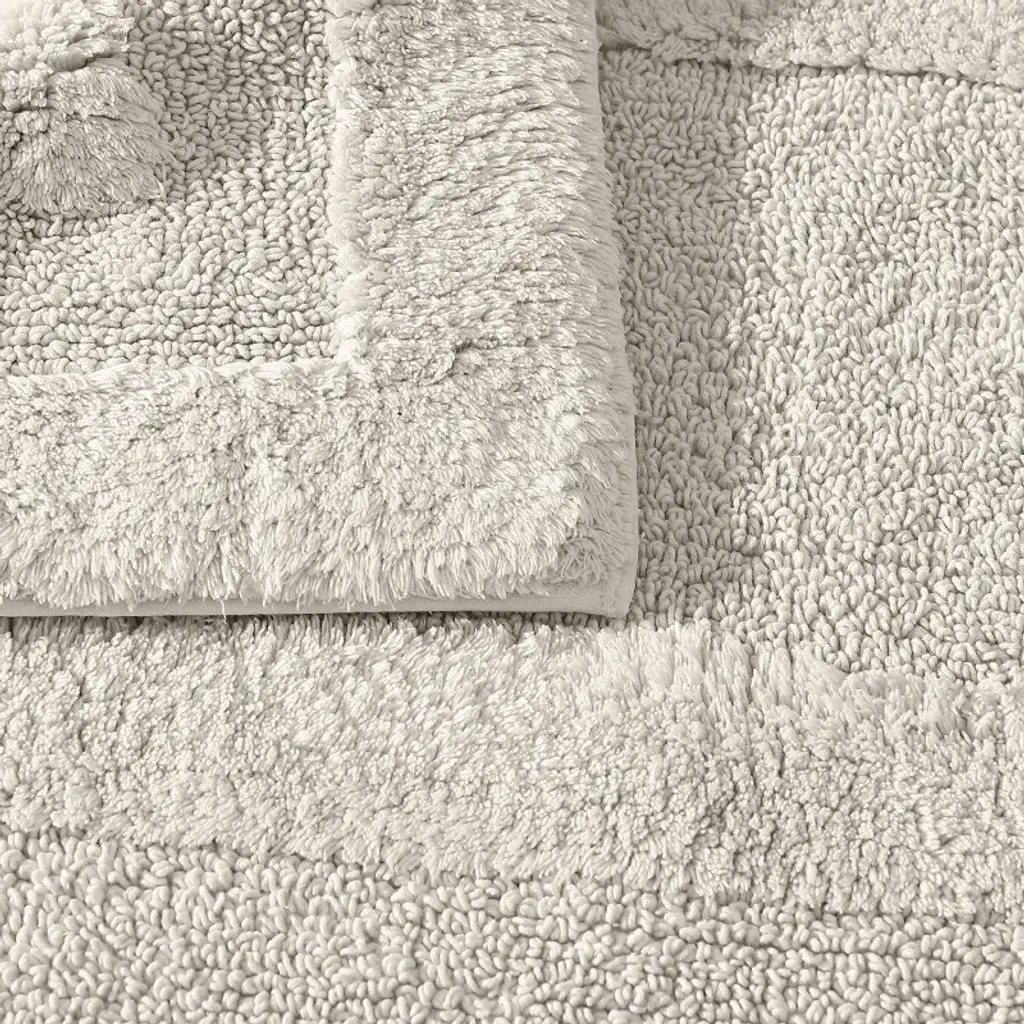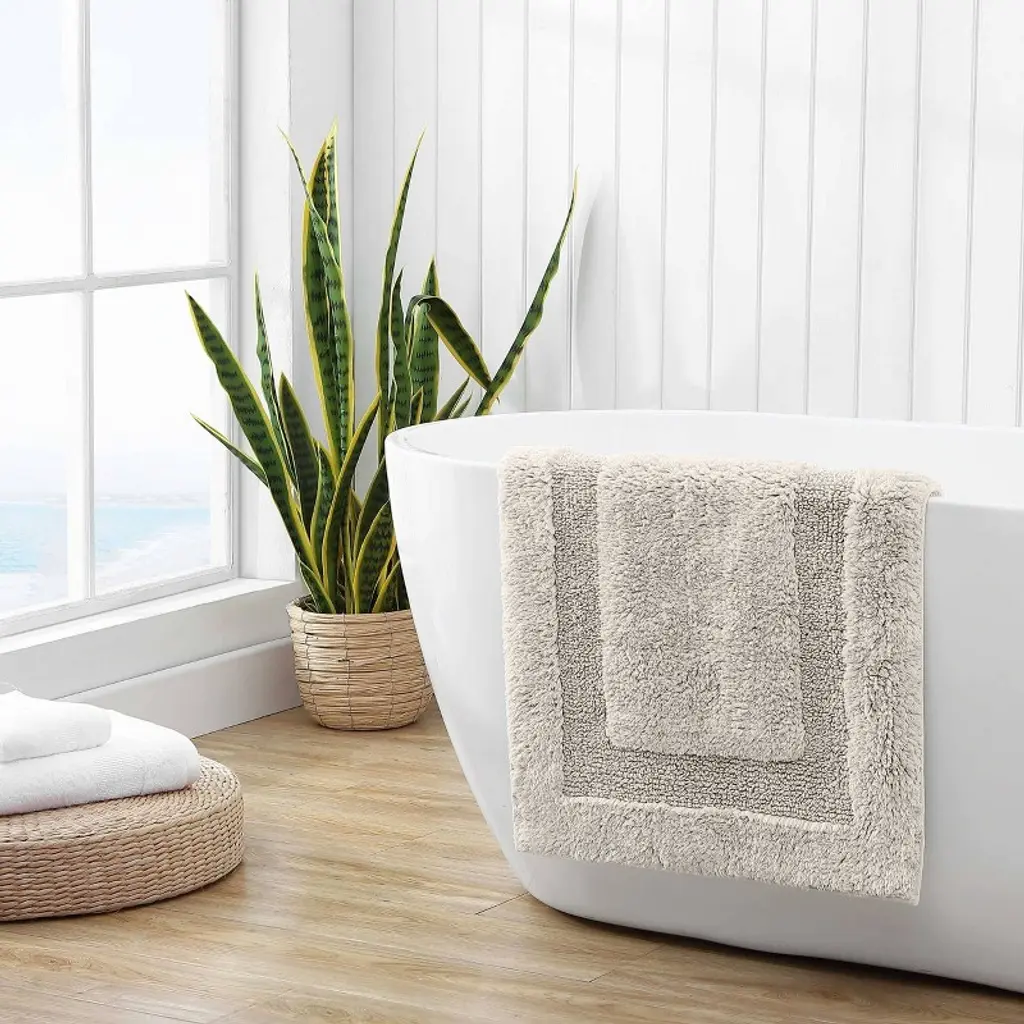 The Tommy Bahama Long Branch reversible solid bath rug is designed to offer a luxurious and comfortable experience with every step. Constructed from 100% premium cotton fibers, this thick and soft rug feels like stepping on a Cloud. The yarn-dyed cotton ensures durability and long-lasting color, making it a perfect addition to any bathroom. Available in a variety of soothing colors white, light pastel blue, natural linen, and sage green , this versatile rug complements a range of bathroom styles. For added convenience, the bath rug is machine washable, ensuring easy care. Each rug measures 21"l x 34"w, and one bath rug is included per purchase.