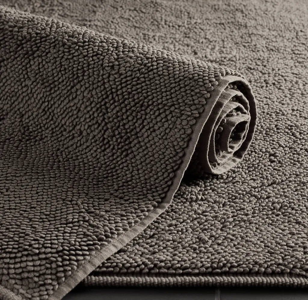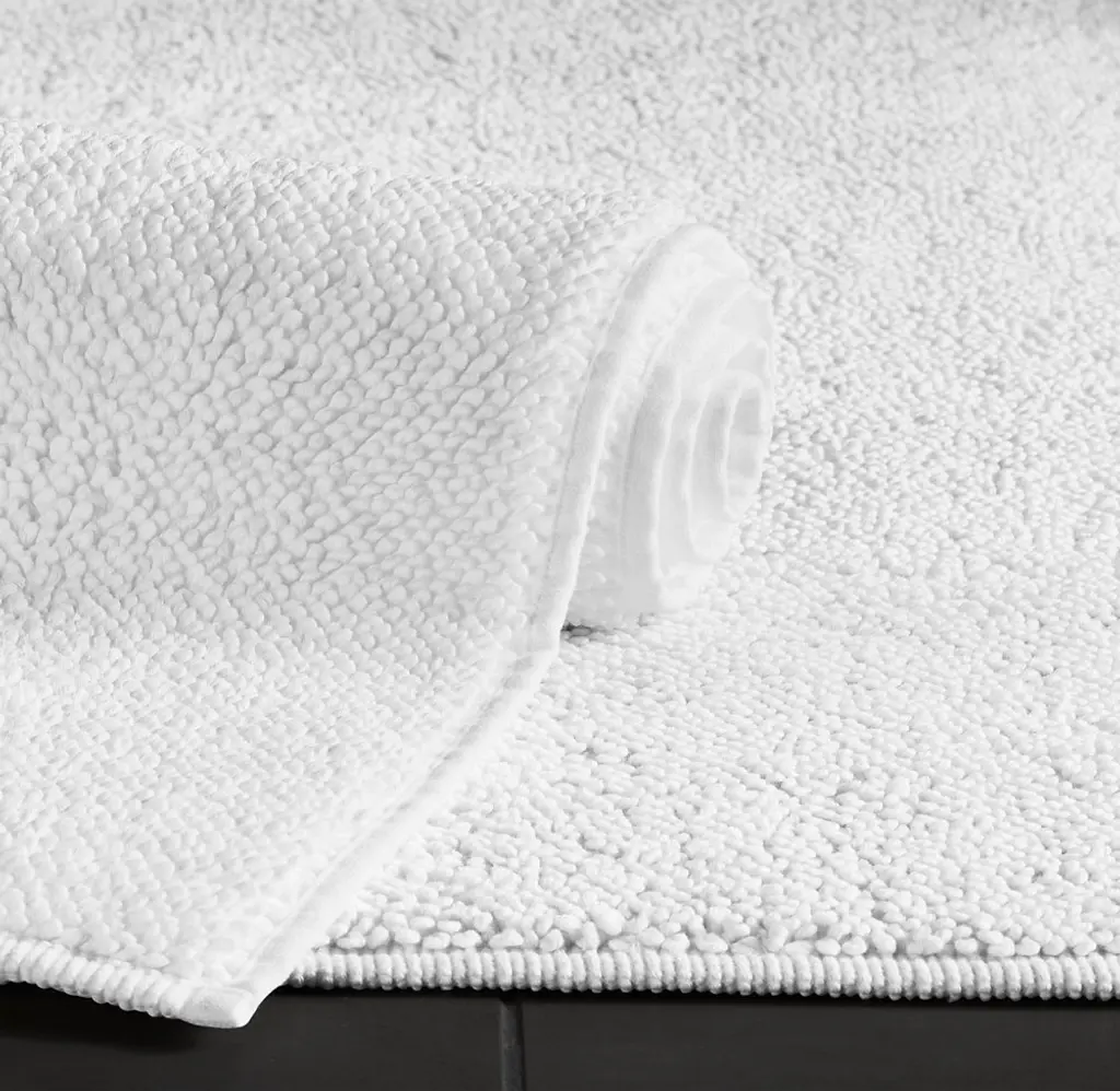 FREE SHIPPING Expertly woven from pure Turkish cotton, our bath rug features thick loops on both sides that are soft underfoot. Loomed to a hefty 1700 grams per square meter, the ultra-absorbent rug wears beautifully over time and can be reversed for extended use.