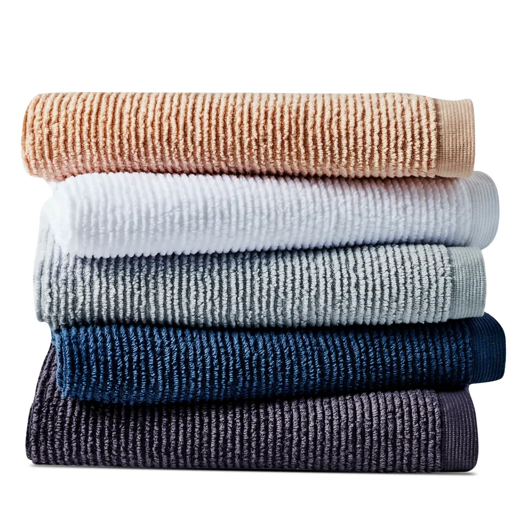 The Matouk Aman bath towel collection features zero-twist cotton yarns and a lofty ribbed texture for towels that are irresistibly soft, plush, and absorbent.