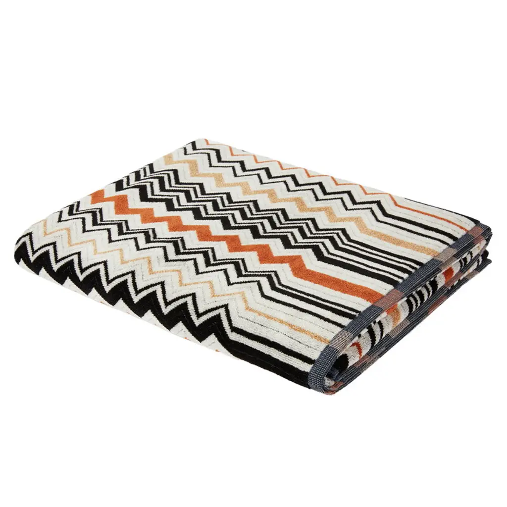 Missoni Home’s Bernard bath sheet brings a fresh look to the bathroom even before it’s in use. Simply hanging on the rack, the towel brightens up everyday routines. When the right moment comes, it wraps your body in the soft embrace of 100% cotton terry. The towel’s multicolored chevron pattern adds a cheerful touch to your space and pairs beautifully with other Missoni Home towels, whether in matching shaded or contrasting patterns. The Missoni Home collection is known for its bold zigzags, stripes and waves, inspired by the fashion house’s iconic knitwear. Founded in 1953 by Ottavio and Rosita Missoni, the Italian brand gained international fame for its vivid color palettes and striking graphic patterns.