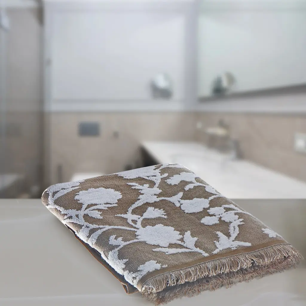 Wrap yourself in the luxurious comfort of the 30" X 60" Cameron Bath Sheet. Featuring an elegant white floral design on a taupe background, this printed bath sheet combines both beauty and functionality, making it a perfect addition to your bathroom. Its cotton fabric ensures maximum absorbency, quickly drying you off and keeping you comfortable. Add a touch of sophistication and serenity to your daily routine with this Cameron bath sheet.