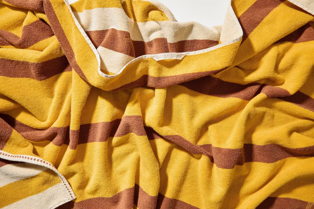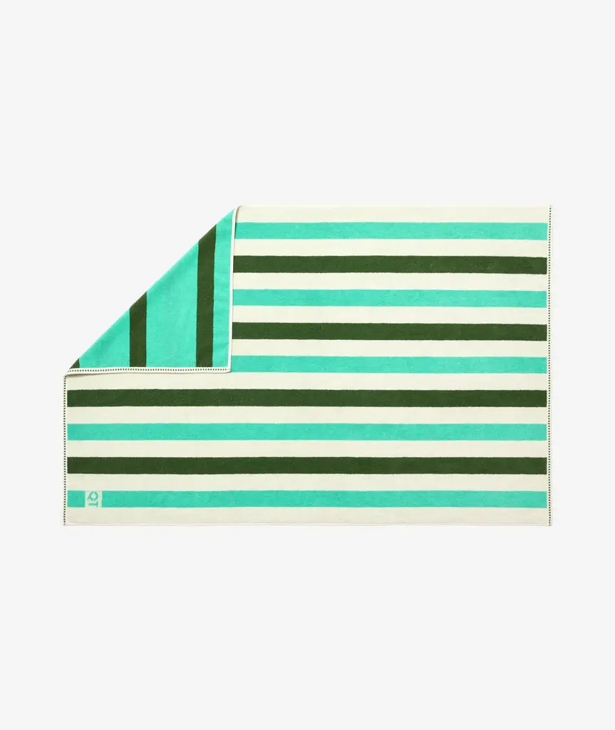 Introducing the Catalina towel collection! Double-sided stripes with a cream stripe running through one side and color-to-color on the other. Made from 100% GOTS certified organic cotton in Portugal, the Catalina is a generous 40”x60” bath sheet. Designed to be styled on its own or mixed with our Tam check towels for easy pattern play. Trimmed in tiny checks and finished with a small, sculpted QT and our hanging loop for ease.