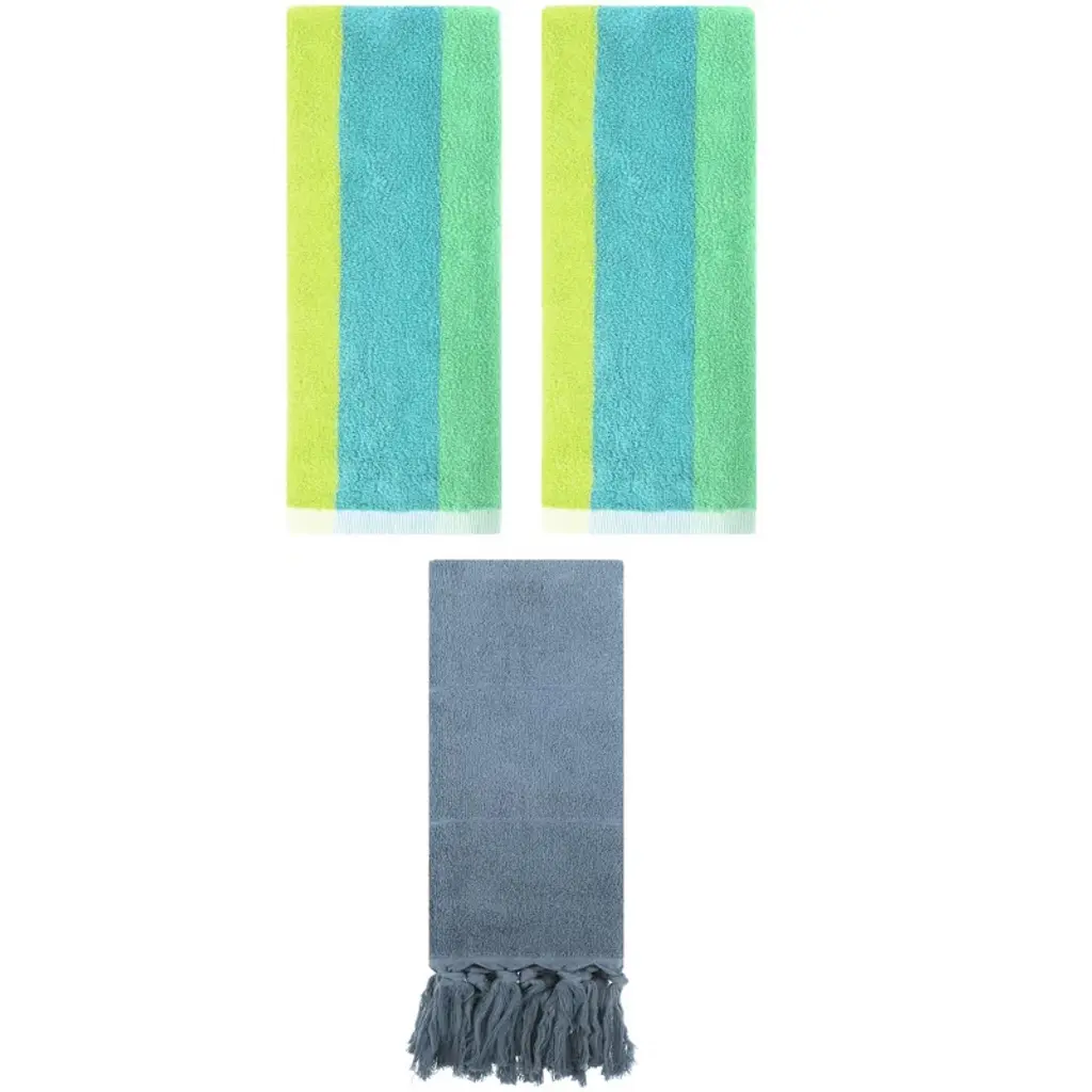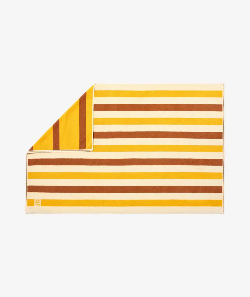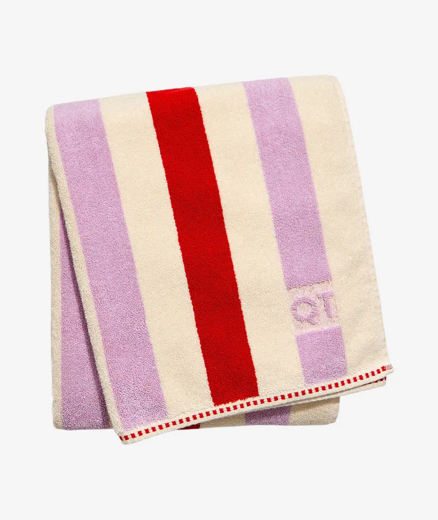 Introducing the Catalina towel collection! Double-sided stripes with a cream stripe running through one side and color-to-color on the other. Made from 100% GOTS certified organic cotton in Portugal, the Catalina is a generous 40”x60” bath sheet. Designed to be styled on its own or mixed with our Tam check towels for easy pattern play. Trimmed in tiny checks and finished with a small, sculpted QT and our hanging loop for ease.