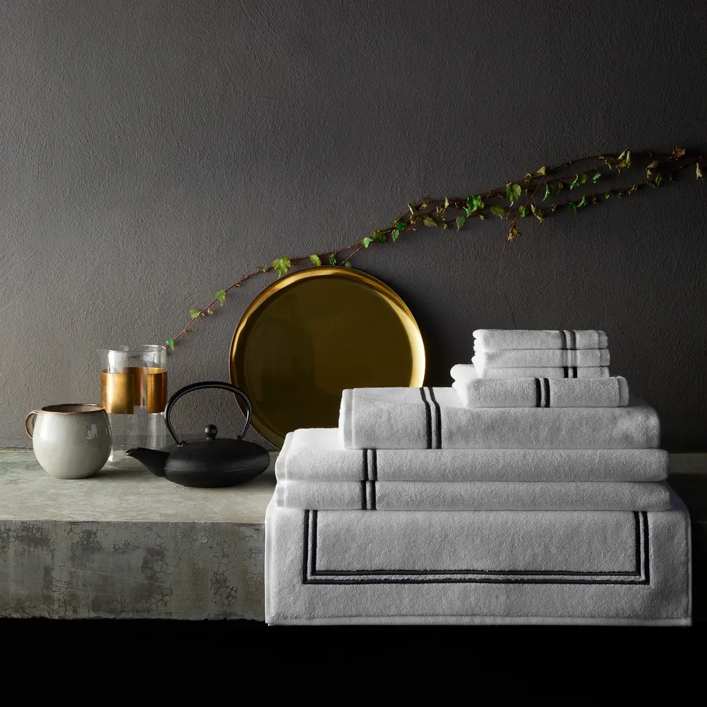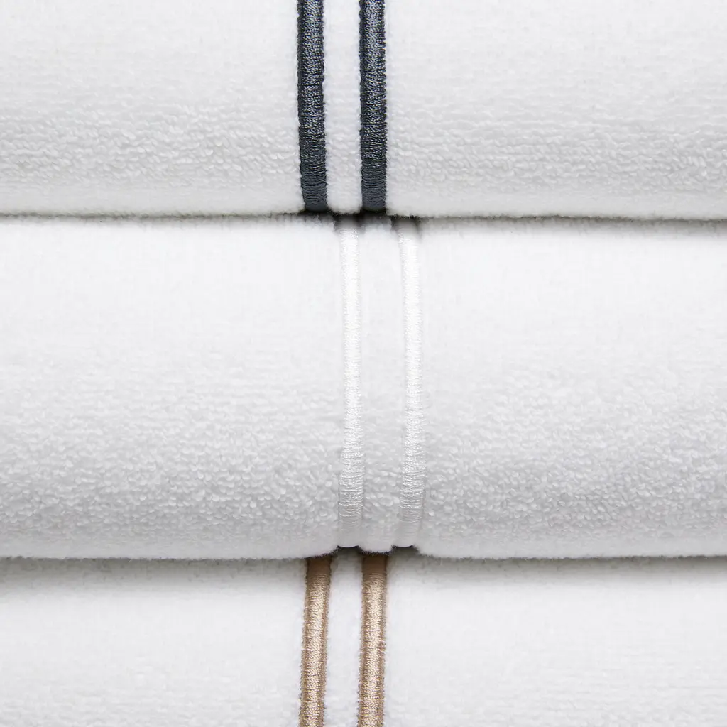 Classic and luxurious, these cotton terry bath towels feature a double barrata stitch border in a range of contrasting hues.