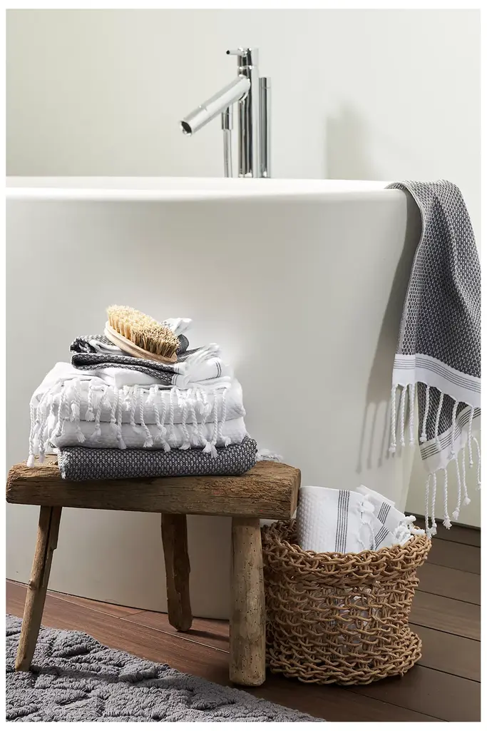 In Turkey, where bathing has been raised to an art, khadi is the traditional choice for toweling. Lightweight and textural, the weave absorbs well, dries quickly and feels great against the skin. Coyuchi's khadi towels are loomed from soft organic cotton in yarn-dyed stripes and edged in hand-knotted fringe.Coyuchi produces high-quality linens from minimally processed natural and organic fibers in responsible and ethical factories. With a relaxed palette inspired by the coast, Coyuchi products are crafted without compromise to design, comfort or the planet. * 100% Organic Cotton* Machine washable. Wash on gentle/delicate cycle with like colors, cold water and a natural, plant based detergent. Whiteners not recommended, as bleaching agents may diminish the brilliance of the colors. Only use non-chlorine bleach. Line dry, or tumble dry low and remove promptly.* Imported#### *Dimensions** 39" x 71"