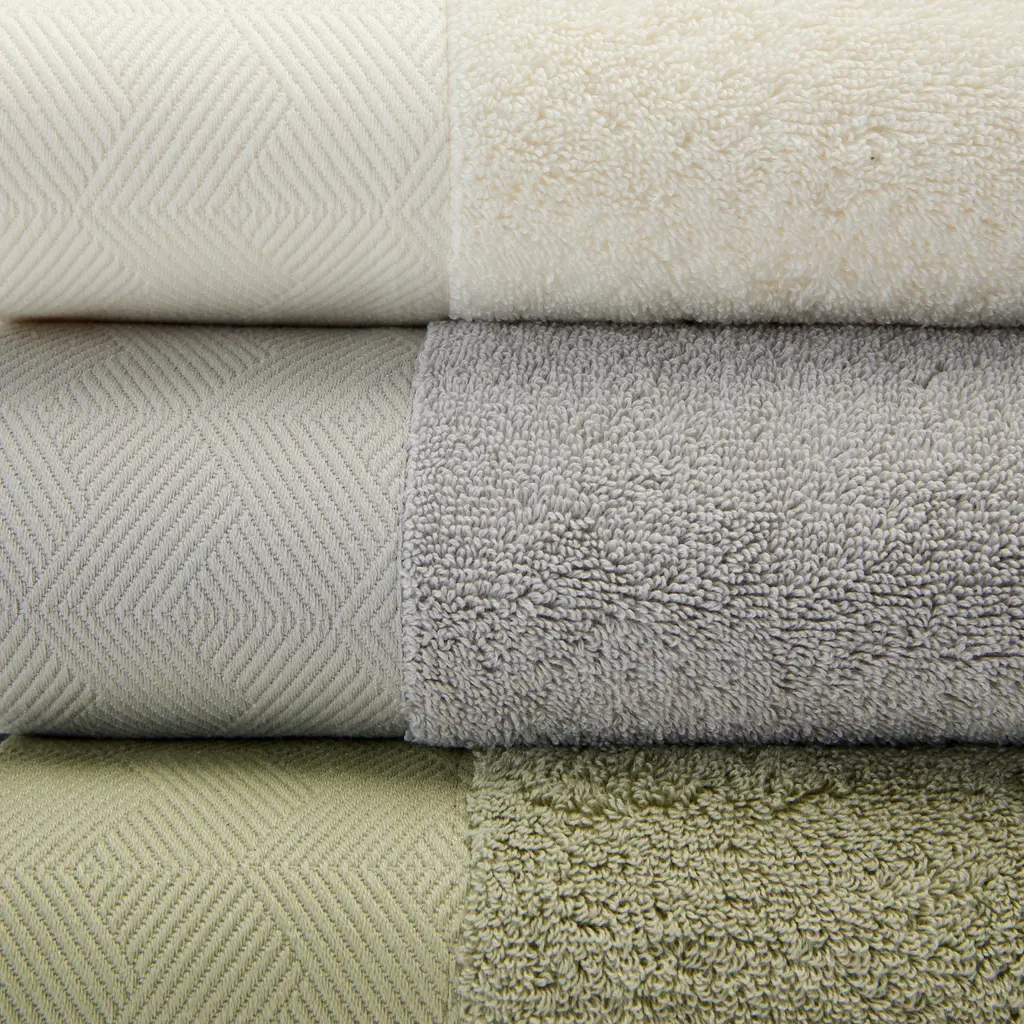 Luxuriously soft and absorbent, these Egyptian cotton bath towels by Frette feature a diamond-patterned jacquard border.