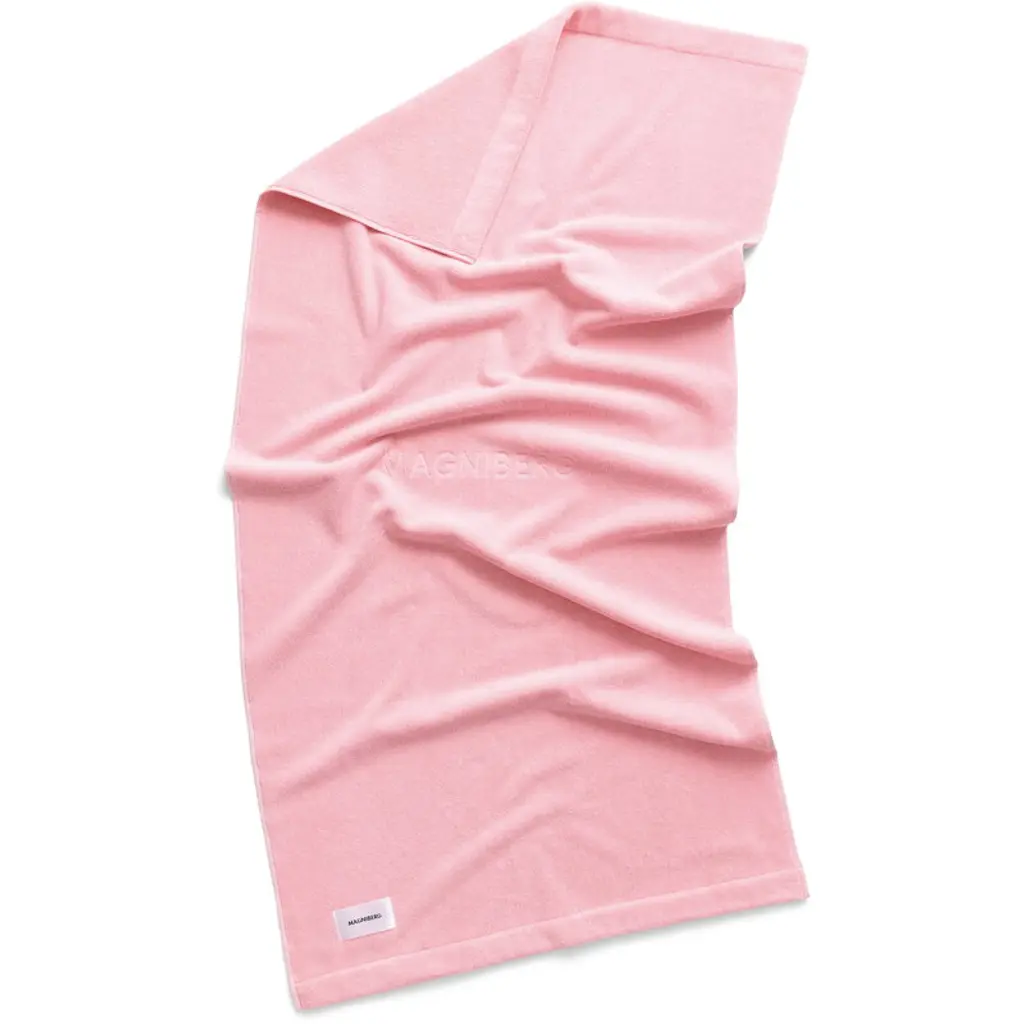 Magniberg's Gelato bath sheet is an oversized terry towel made from organic cotton, offering a soft embrace for wrapping up after a swim or bath. The plush feel of the towel is achieved through the use of twisted and long-staple yarn, making the terry loops exceptionally airy. Produced in Portugal, the Gelato collection's colors are inspired by the flavors of Italian ice cream and the atmosphere of a Southern European summer. The luxurious terry towels are complemented by folded hems, two hanging loops and a debossed Magniberg logo at the center.