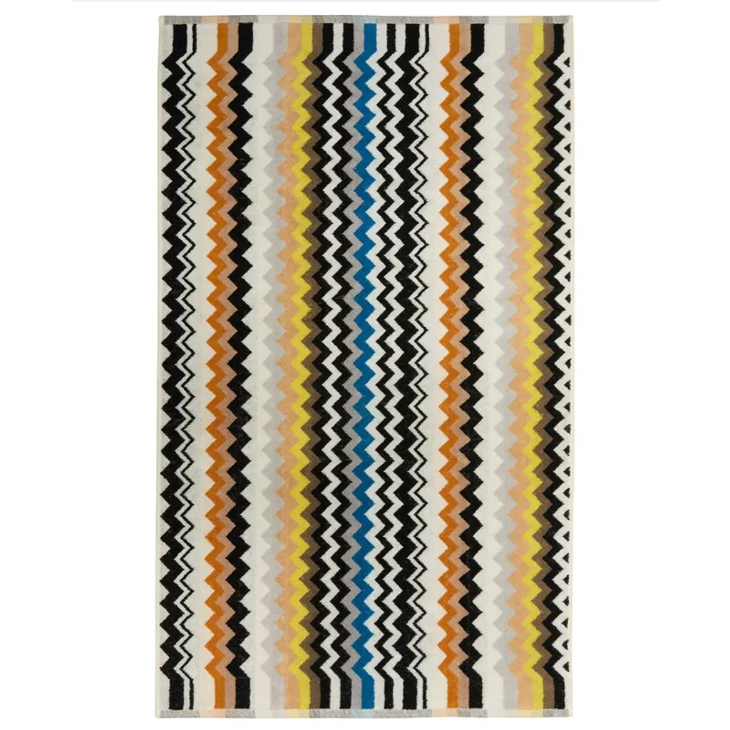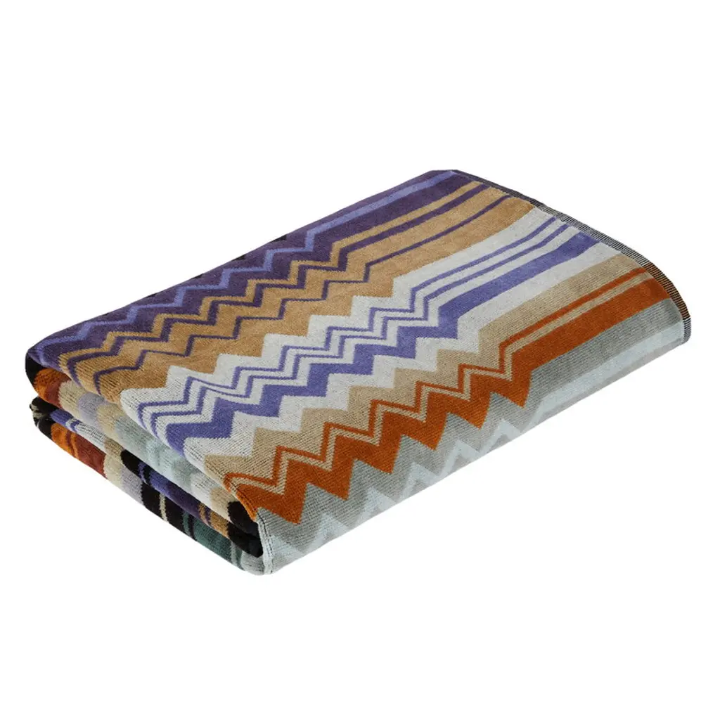 Missoni Home’s Giacomo bath sheet brings a fresh look to the bathroom even before it’s in use. Simply hanging on the rack, the towel brightens up everyday routines. When the right moment comes, it wraps your body in the soft embrace of 100% cotton velour terry. The towel’s multicolored zigzag pattern adds a cheerful touch to your space and pairs beautifully with other Missoni Home towels, whether in matching shaded or contrasting patterns. The Missoni Home collection is known for its bold zigzags, stripes and waves, inspired by the fashion house’s iconic knitwear. Founded in 1953 by Ottavio and Rosita Missoni, the Italian brand gained international fame for its vivid color palettes and striking graphic patterns.