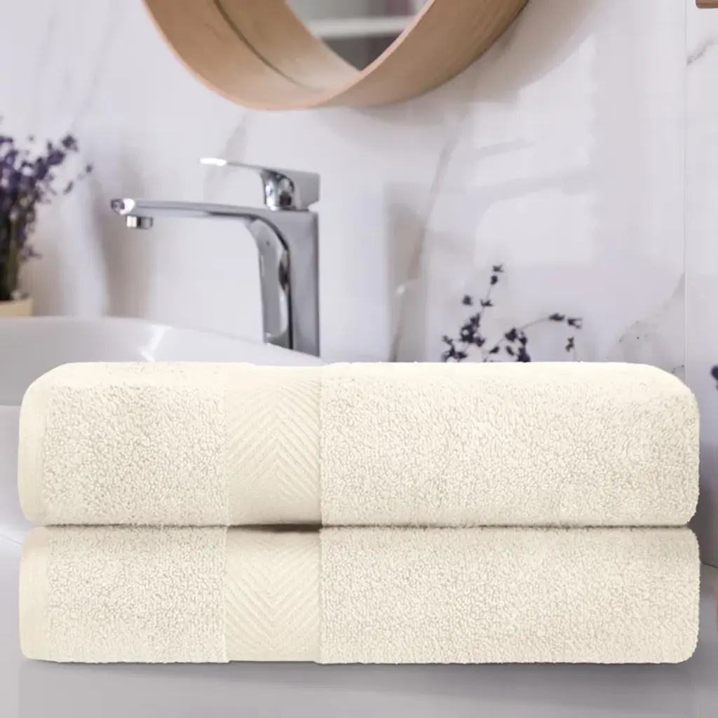 The Stanley zero-twist 2-piece towel set is constructed from 100% premium cotton that is both highly absorbent and durable. This bundle includes 2 bath towels, and each piece features a unique chevron border. The 575 grams per square meter (GSM) towel weight and two-ply construction help to absorb water fast while being ultra-soft and long-lasting. Available in numerous solid colors, updating the look of your master or guest bath has never been easier.
