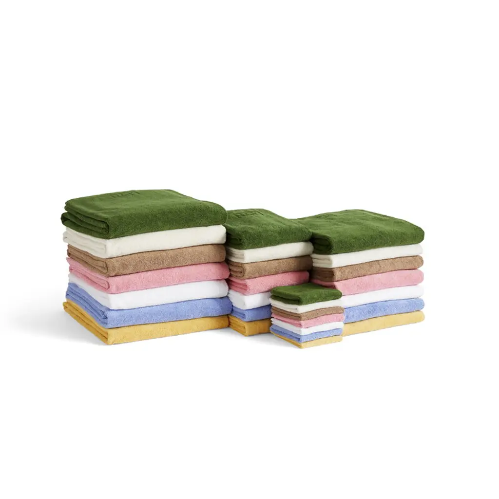 HAY’s Mono bath sheet is adorned with a monochrome color scheme enlivened by an embossed HAY logo on one end. Made of durable, certified cotton, the Mono bath sheet has a soft and absorbent terrycloth texture that feels utterly lovely on the skin. The Mono collection consists of terry towels for both bathroom and beach use, and their bold and muted colors are also ideal for mixing and matching.