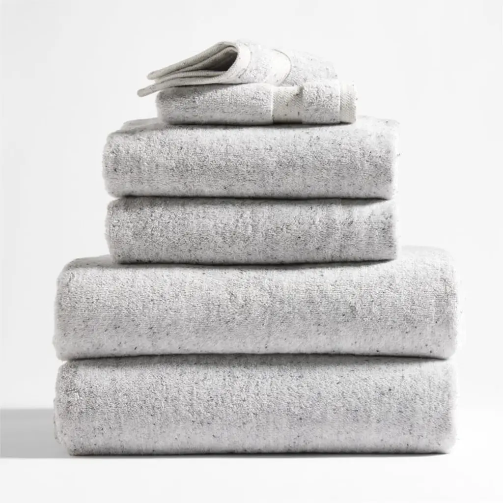 Wrap yourself in the plush embrace of our organic Turkish cotton bath sheet. The grey tones and flecked detail come from tiny bits of contrasting color that are twisted into the cotton fiber as it's spun into yarn. At 550 grams, the towel has a lighter hand than our other Turkish towels with all of the exceptional absorbency and durability. Dobby weave bands at both ends add a bit of textural detail to the woven cotton towel. Washing will only make this exceptional towel more absorbent and soft. For a full-service, well-coordinated bathroom, team the grey-flecked bath sheet with the matching bath towel, hand towel, washcloth, bath mat and robe.