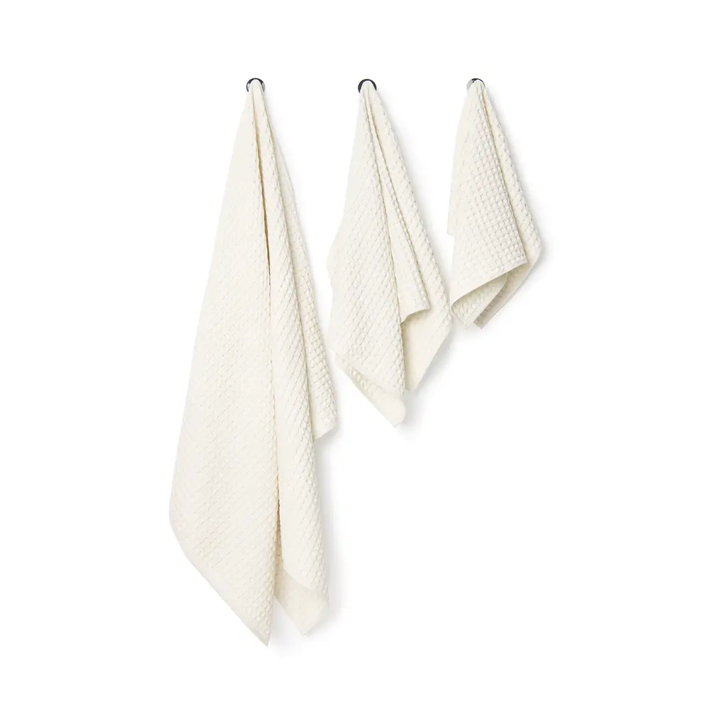 Set of 3 Small Towels Add texture and performance to your routine with our exclusive waffle towel collection, thoughtfully designed to combine lightweight comfort with lasting quality. Featuring an innovative honeycomb weave, these towels dry quickly and absorb efficiently—perfect for modern living.Crafted at a light 300 GSM, they’re pre-washed for an ultra-soft, lush feel from day one and designed to resist shrinkage, maintaining their shape wash after wash. Over time, the waffle texture deepens, becoming even more absorbent and breathable with every use.Certified to the Oeko-Tex® Standard 100, they’re free from harmful substances—pure comfort you can feel good about.