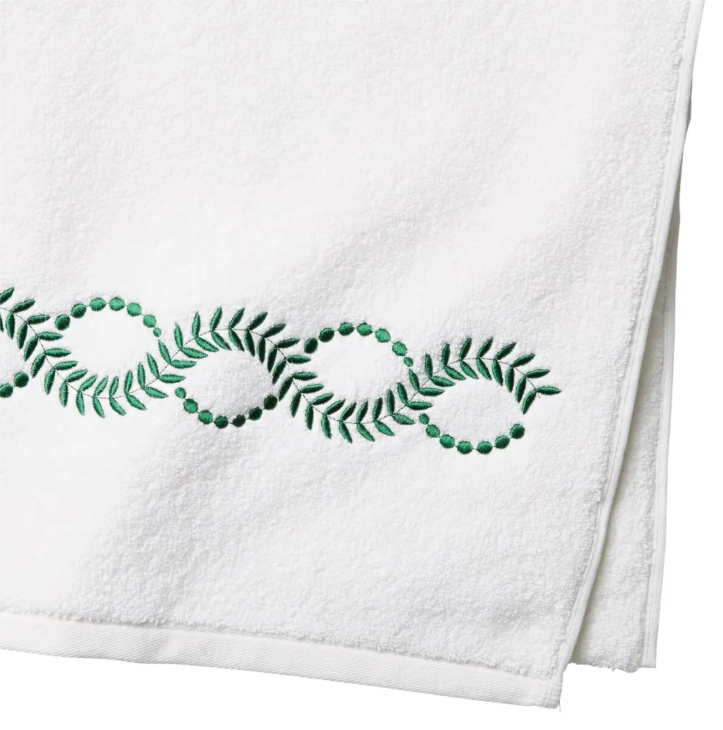 Exclusive to One Kings Lane: Pamper yourself with this spa-worthy, 600-grams-per-square-meter-weight bath sheet. Finished with an embroidered vine motif in green, this super-soft combed cotton towel is as elegant as it is thirsty. Made in Portugal and embroidered in the USA.