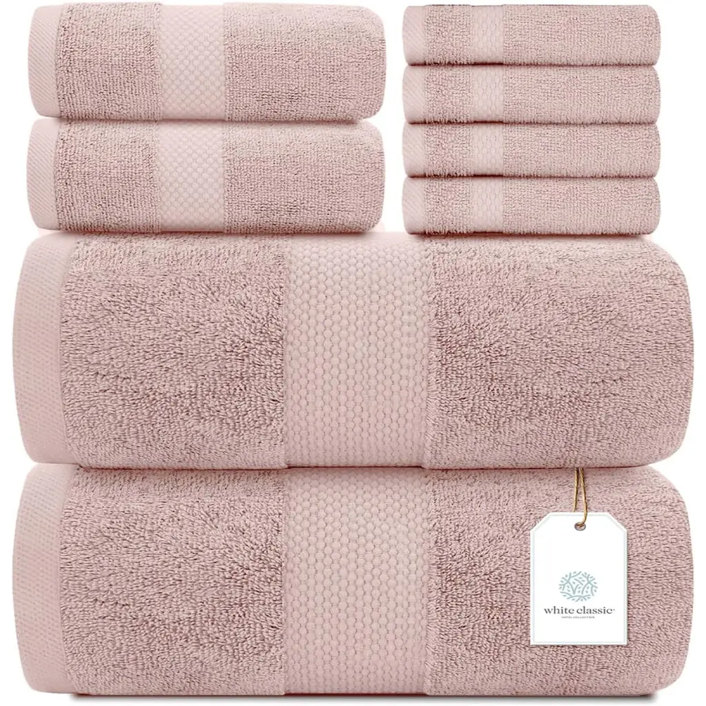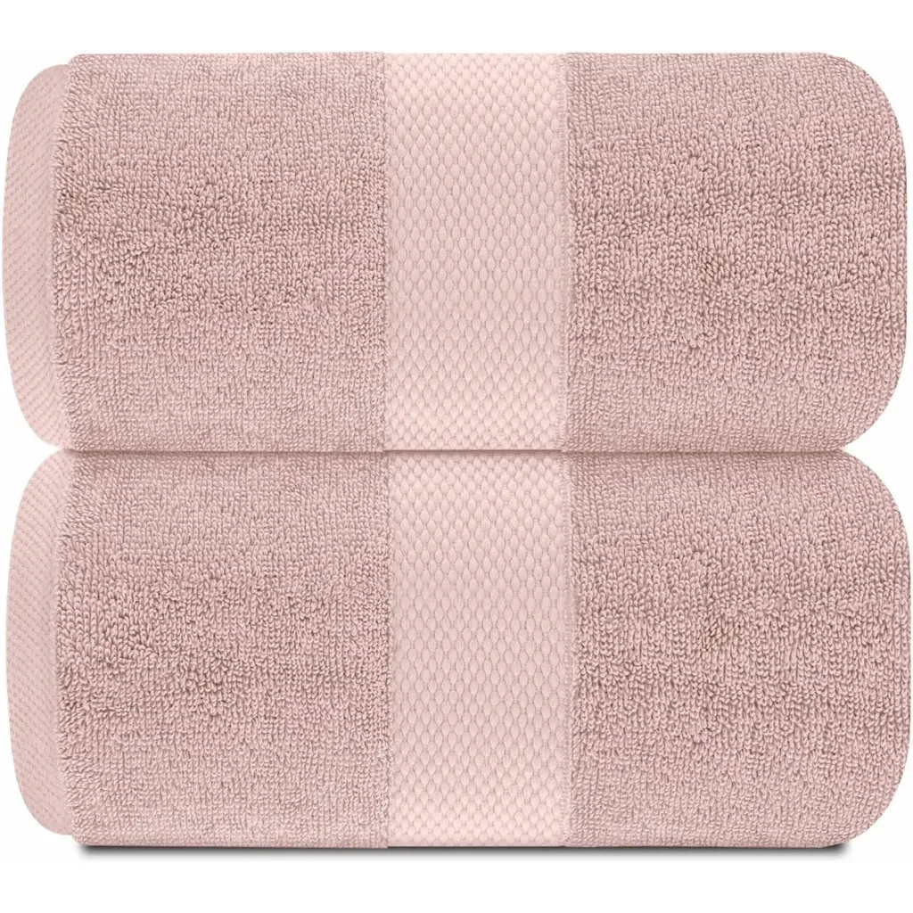 White Classic Luxury Cotton Oversized Bath Sheet 35x70 - Set Of 2 - Pink