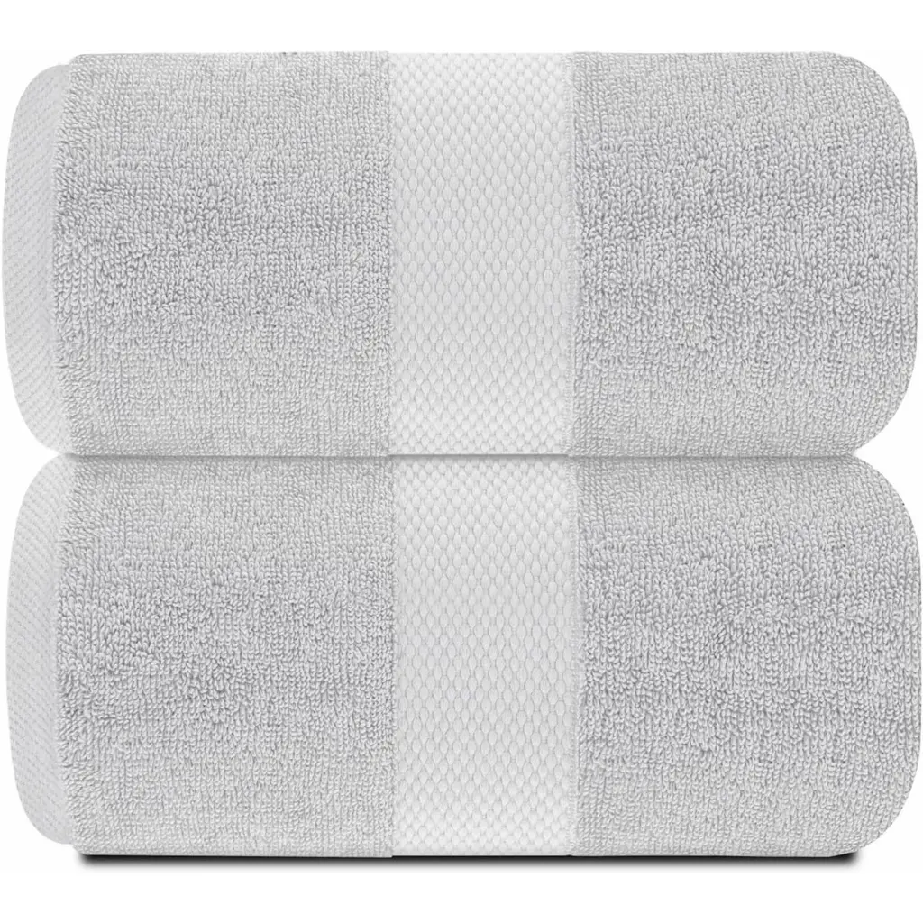 White Classic Luxury Cotton Oversized Bath Sheet 35x70 - Set Of 2 - Silver