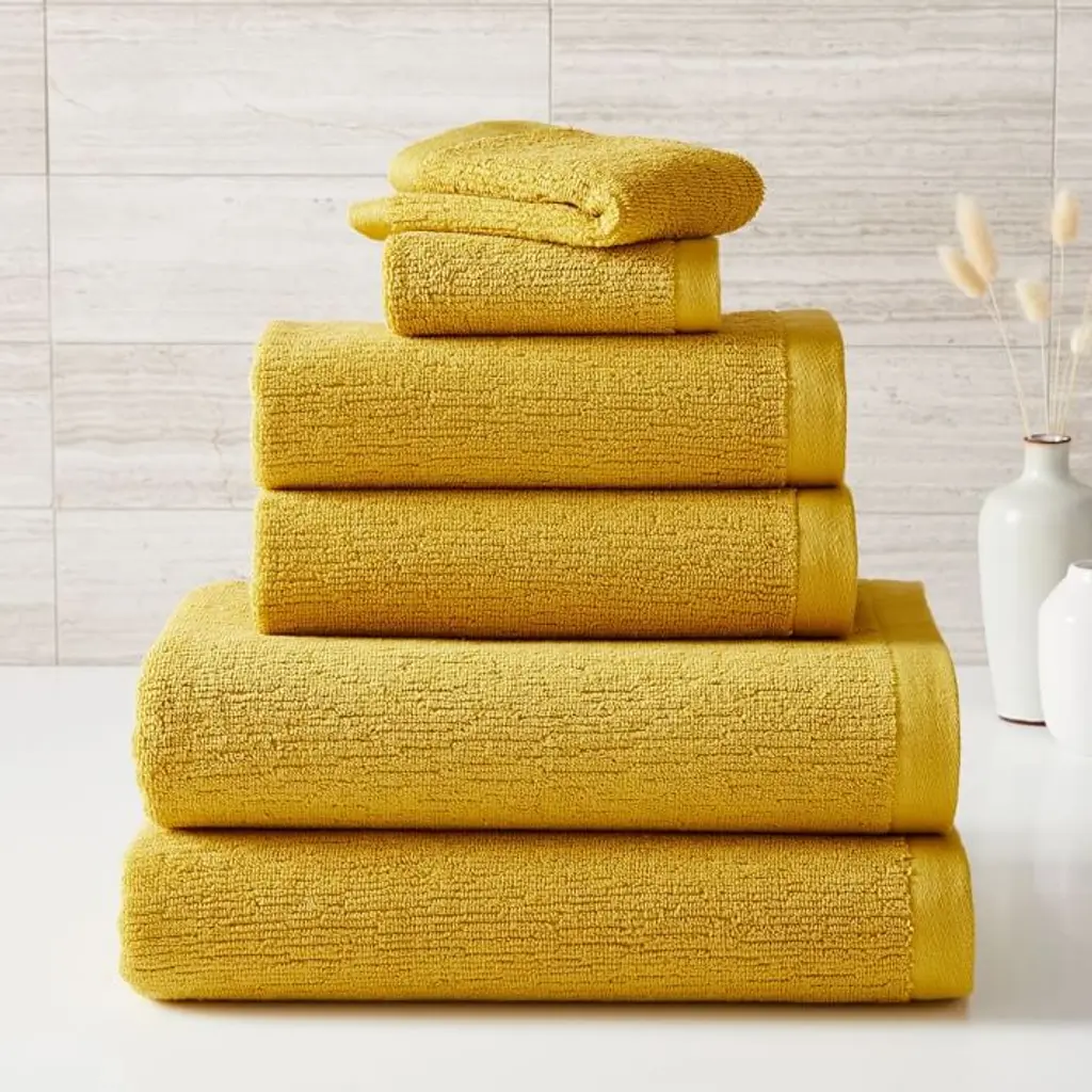Made in Portugal of 2-ply organic cotton yarns, our Textured Towels are a durable (but oh-so-soft) staple that elevates your everyday routine. With a 500-gram weight that's substantial yet quick-drying, their ribbed texture stands up to wear and tear in your choice of neutral or bright colors. Choose from our sets for an easy one-and-done refresh for your bath. 100% organic cotton. Certified to the Global Organic Textile Standard (GOTS) by CU 1000198. 500 gram weight. STANDARD 100 by OEKO-TEX® Certified: tested for 400+ harmful substances. 21.HUS.86232 HOHENSTEIN HTTI Loop for easy hanging. Made in Portugal.